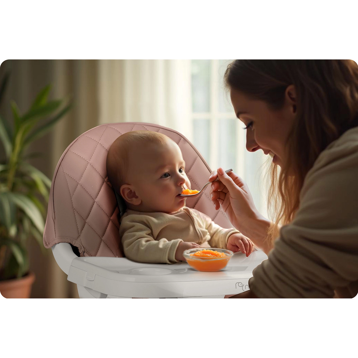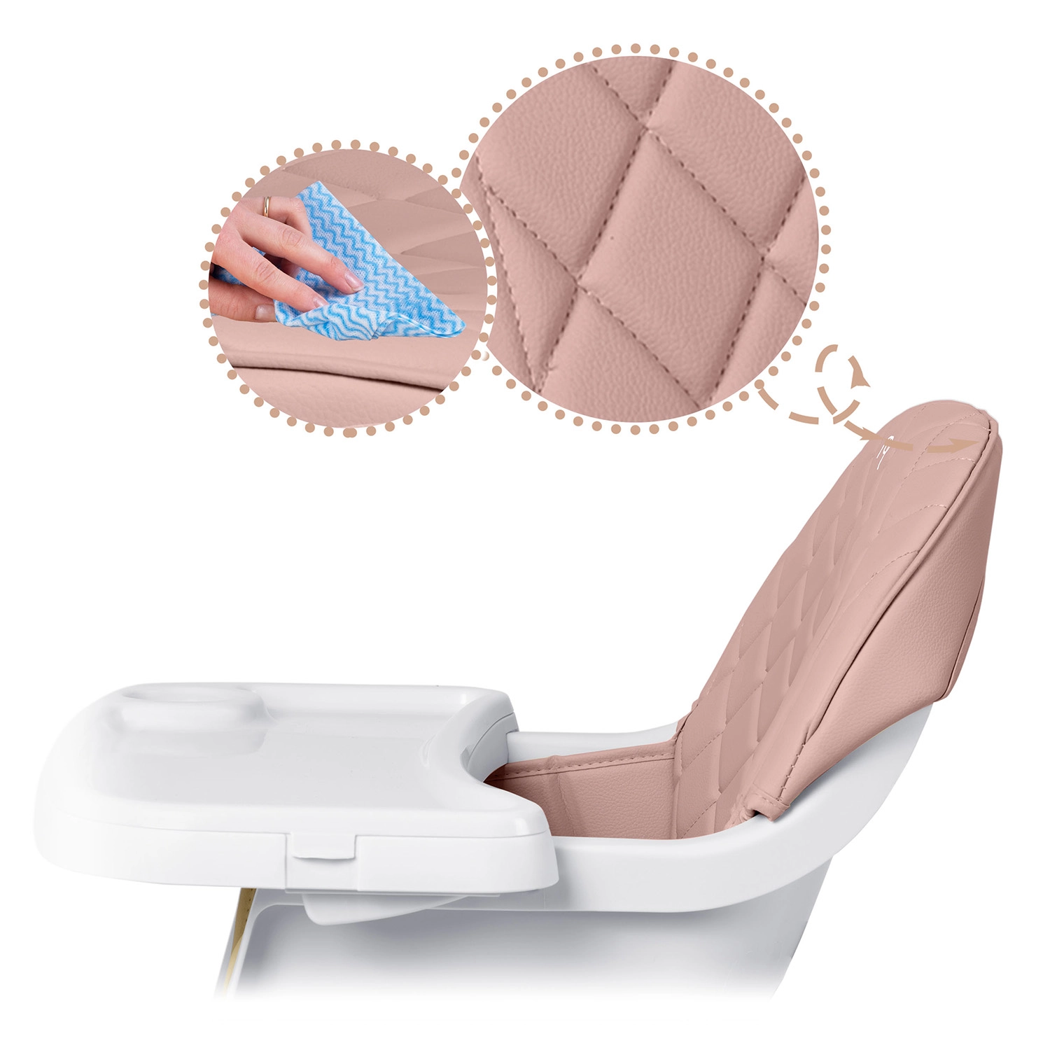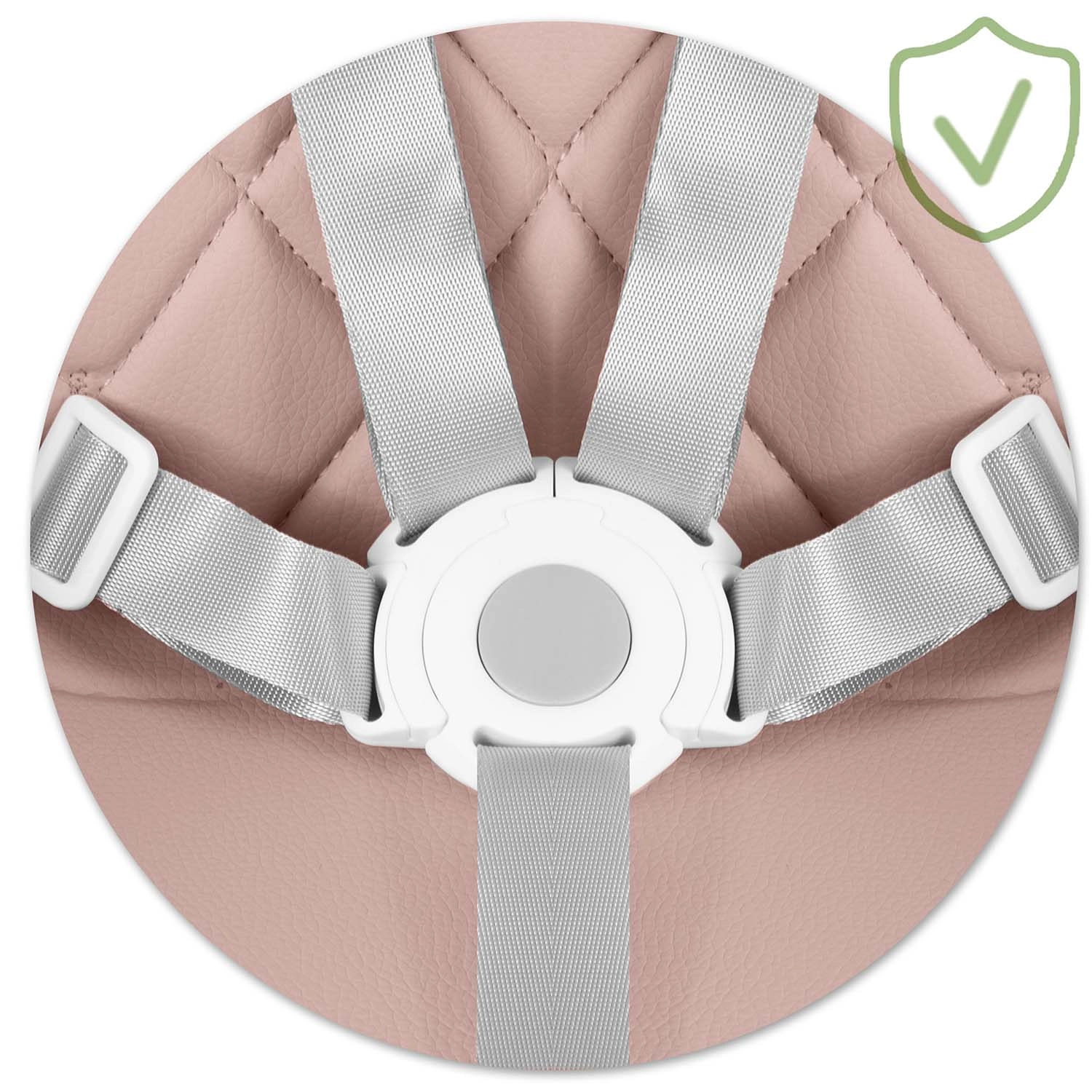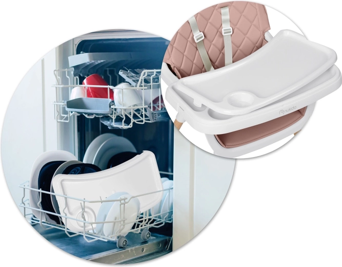 Pålidelige 5-punkts seler, stabile ben med skridsikre fødder og en robust konstruktion sikrer sikker siddestilling ved både måltider og leg.