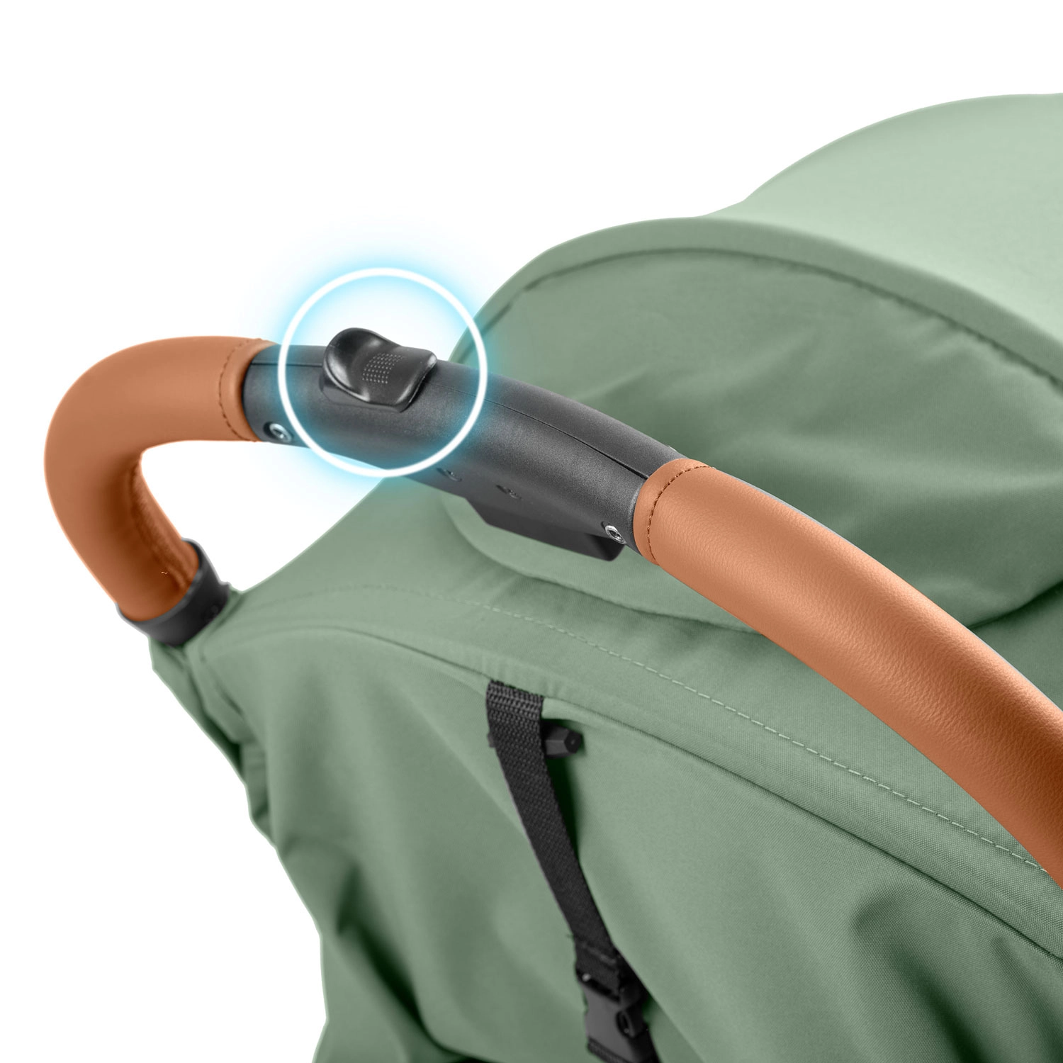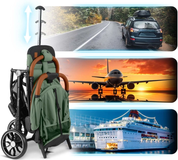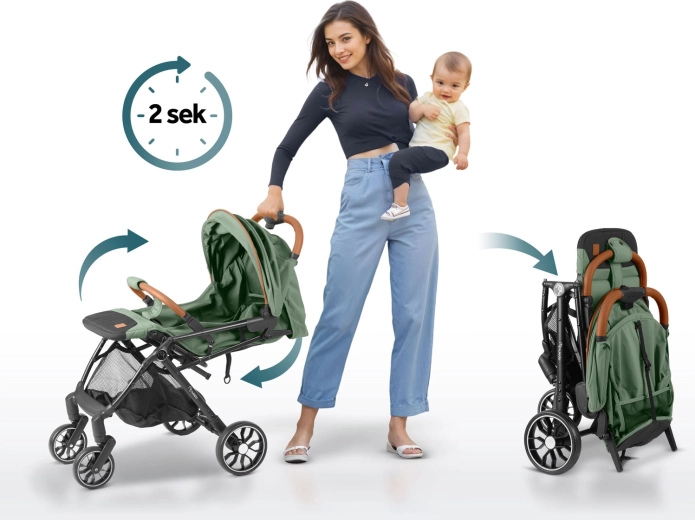 Med én hånd folder du klapvognen sammen på få sekunder til størrelsen af et håndbagage. Ideel til rejser i bil og fly – nem at bære og opbevare.
