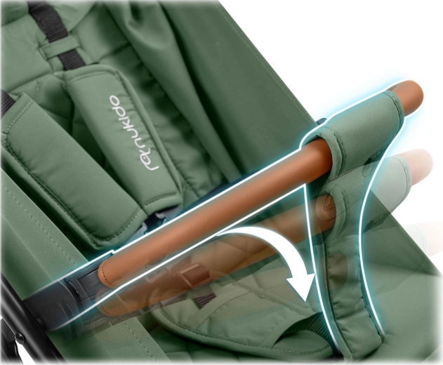 Nukido Paseo kombinerer komfort, sikkerhed og praktikalitet i et elegant design. Takket være den robuste og lette ramme er den let at styre, mens affjedrede 360° forhjul og større baghjul til terræn sikrer en glat tur i byen og i parken. Barnet beskyttes af en polstret fempunktssele og en udvidelig kaleche med beskyttelse mod sol og let regn.