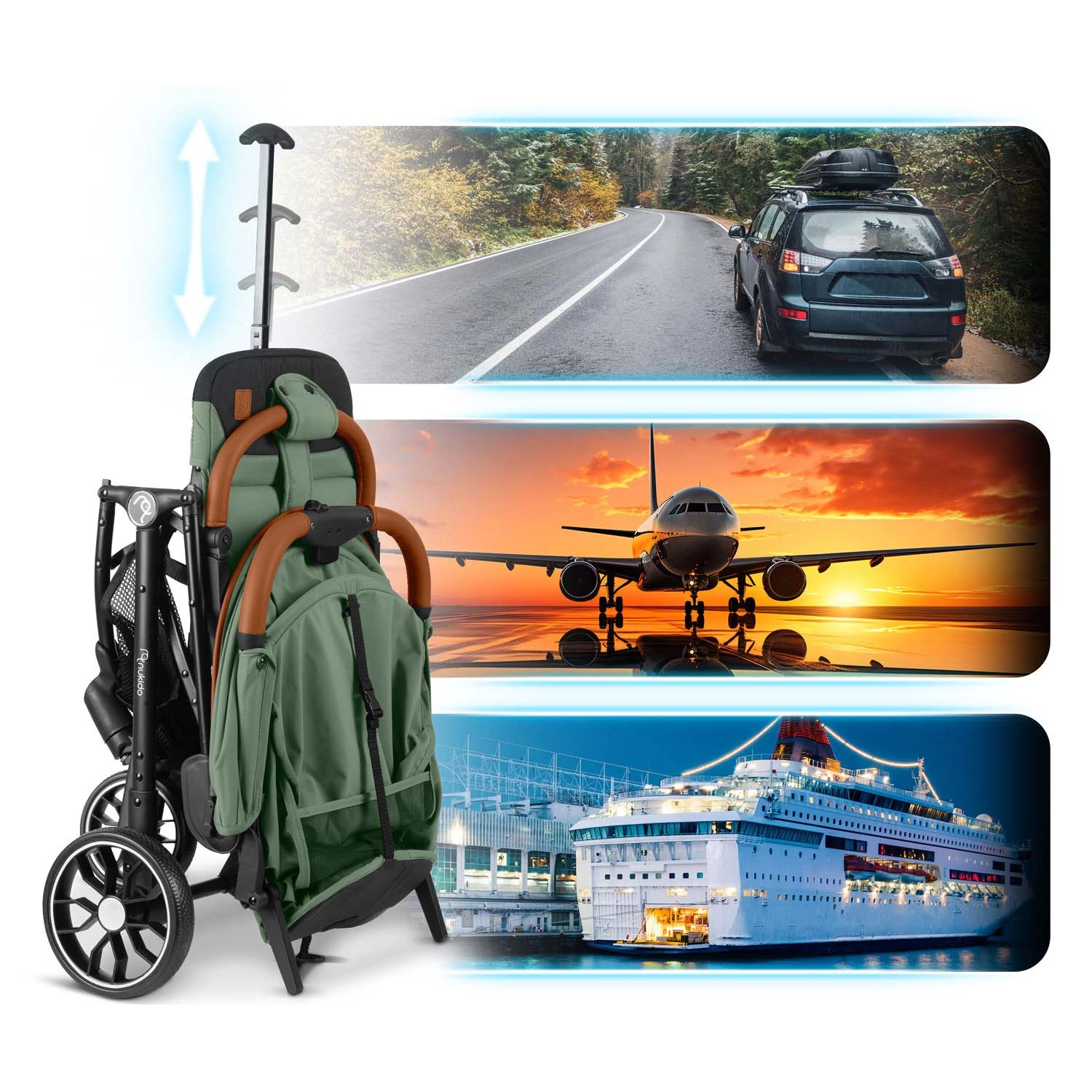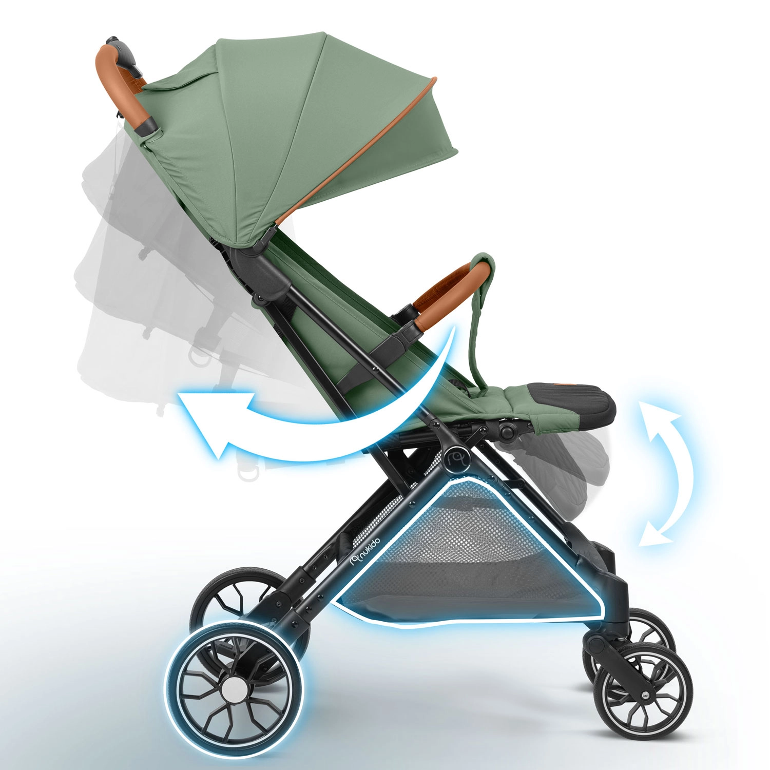 Den lette og kompakte sportsklapvogn Nukido Paseo er den ideelle ledsager til hverdagsture og rejser op til 36 måneder. Den tilbyder kompakt one-hand-fold på 2 sekunder, 360° drejelige forhjul med affjedring, fempunkts sikkerhedssele og udvidelig kaleche med UV-beskyttelse. Takket være de store baghjul, justerbart ryglæn helt ned til liggestilling og praktisk kurv bliver køreturen behagelig for barnet og ubesværet for dig.