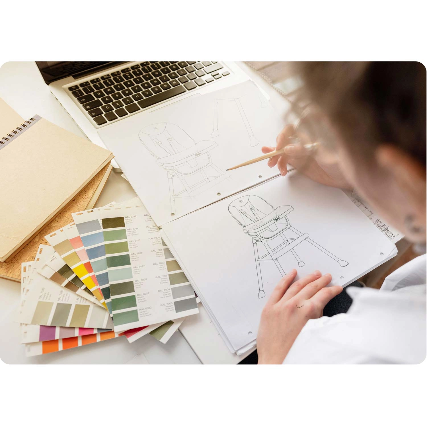 - Komfort og ergonomi: støttende ryglæn og justerbar afstand til bordet