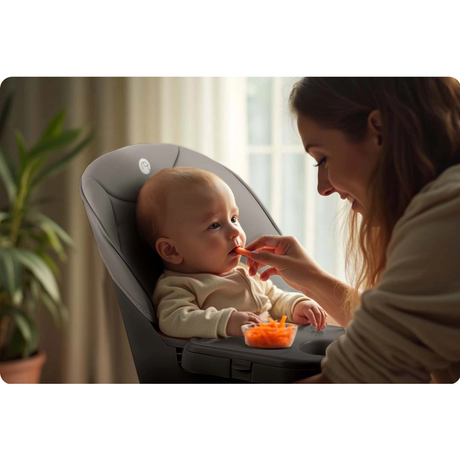 Stabile ben med skridsikre fødder, solid fodstøtte og pålidelige 5-punkts seler holder barnet sikkert og komfortabelt ved både måltider og leg.