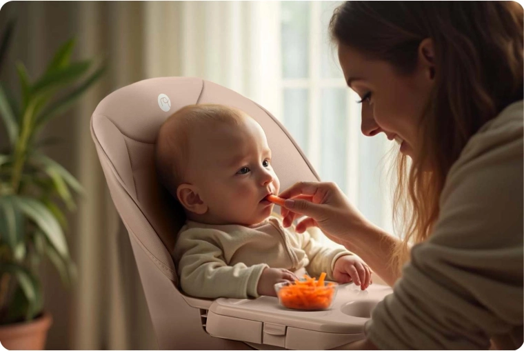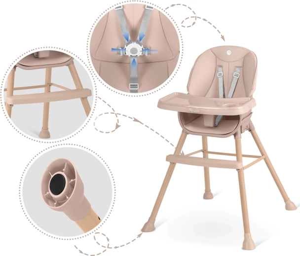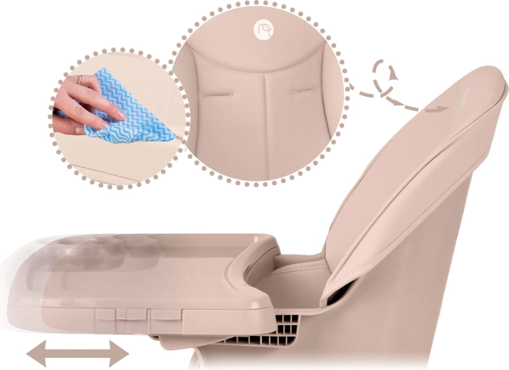Praktiske detaljer gør Tilo til et fremragende valg til hverdagsbrug: ikke-absorberende polstring tørres blot af med en fugtig klud, 5-punkts seler holder barnet sikkert på plads, og en robust stålramskonstruktion med skridhæmmende ender sikrer stabilitet på forskellige underlag. Ideel til måltider, tegning, byggeleg og de første selvstændige læsestunder.