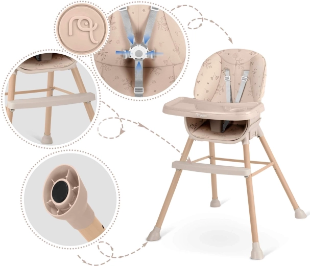 Den alsidige højstol NUKIDO Tilo 3-i-1 i elegant beige vokser med dit barn og tilpasser sig måltider, leg og læring. Den tilbyder en justerbar og aftagelig bakke med en let aftørrelig indsats, 5-punkts seler for maksimal sikkerhed og stabile ben med skridsikker finish. Nem vedligeholdelse og gennemtænkt ergonomi sikrer komfort og korrekt kropsholdning hver dag.