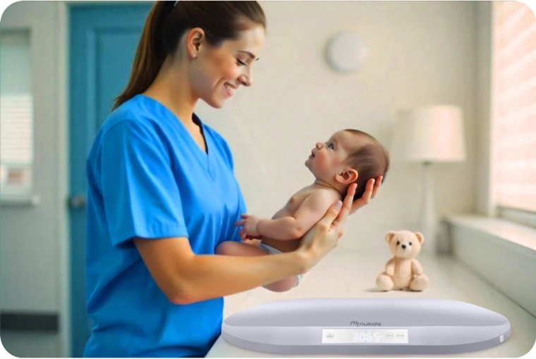 Vægten registrerer selv meget små ændringer i vægten (0,005 kg), hvilket er afgørende for at følge vægtøgning, støtte amning og pleje af for tidligt fødte børn.