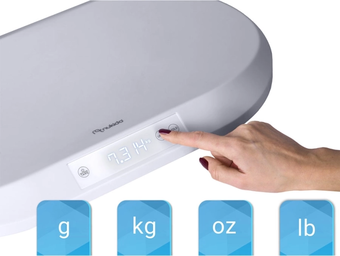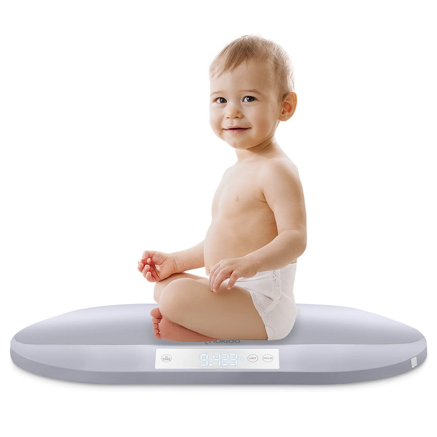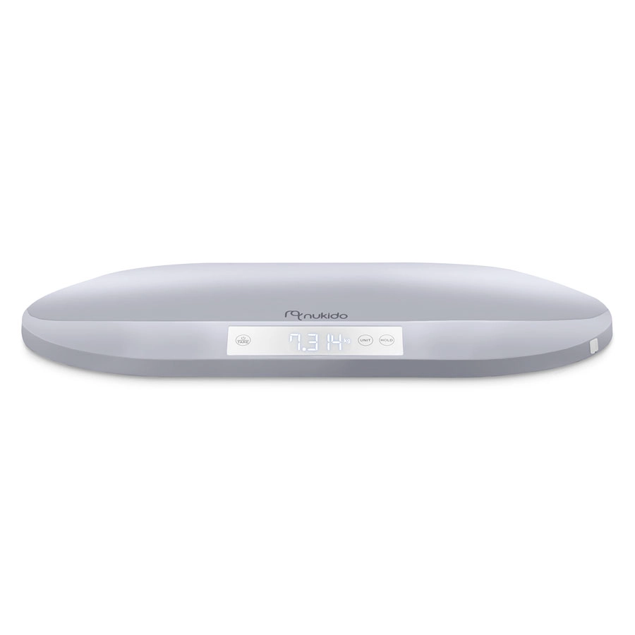 Den elektroniske babyvægt Nukido tilbyder ekstraordinær præcision på 5 g, maksimal bærekapacitet på 40 kg og HOLD-funktion for et stabilt resultat selv når babyen bevæger sig. Takket være TARE-funktionen, muligheden for enhedsskift (g, kg, oz, lb) og et stort, baggrundsbelyst LCD-display kan du nemt følge vægtøgning og støtte amning samt langtidsmonitorering af vækst. Den sikre konstruktion i slagfast ABS og certificeringerne CE, RoHS, FCC, CPC, ISO9003, BSCI sikrer pålidelighed til både hjemme- og professionel brug.