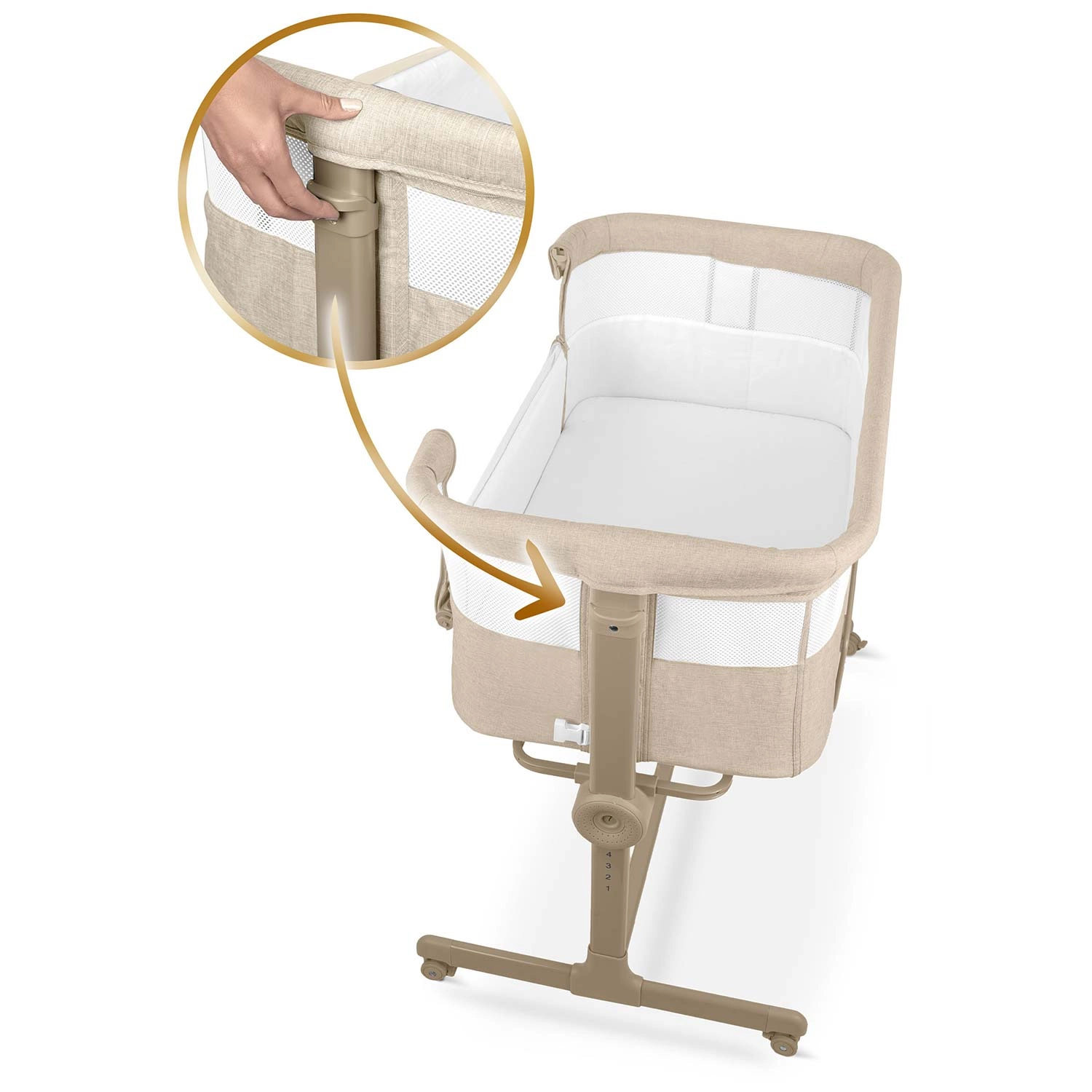 Begge sider kan indstilles separat. Du kan nemt matche højden med forældrenes seng eller skabe en let hældning for større komfort for barnet.