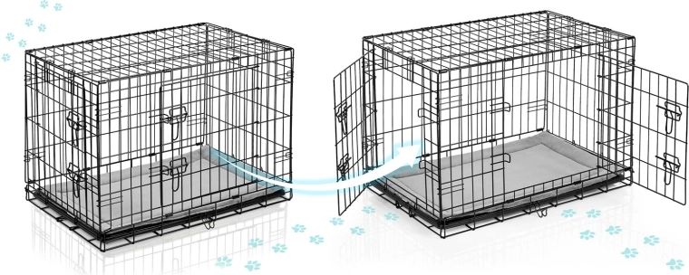 For- og sidedør giver fleksibel placering af buret og let håndtering af hunden. Holdbare låse forhindrer utilsigtet åbning.