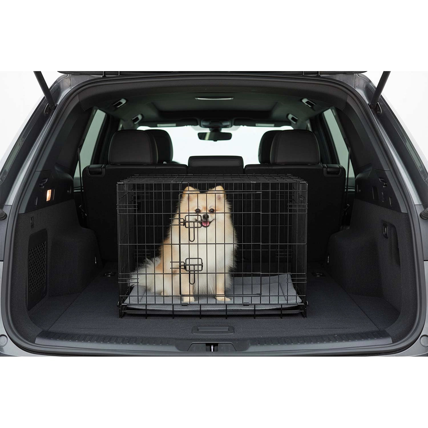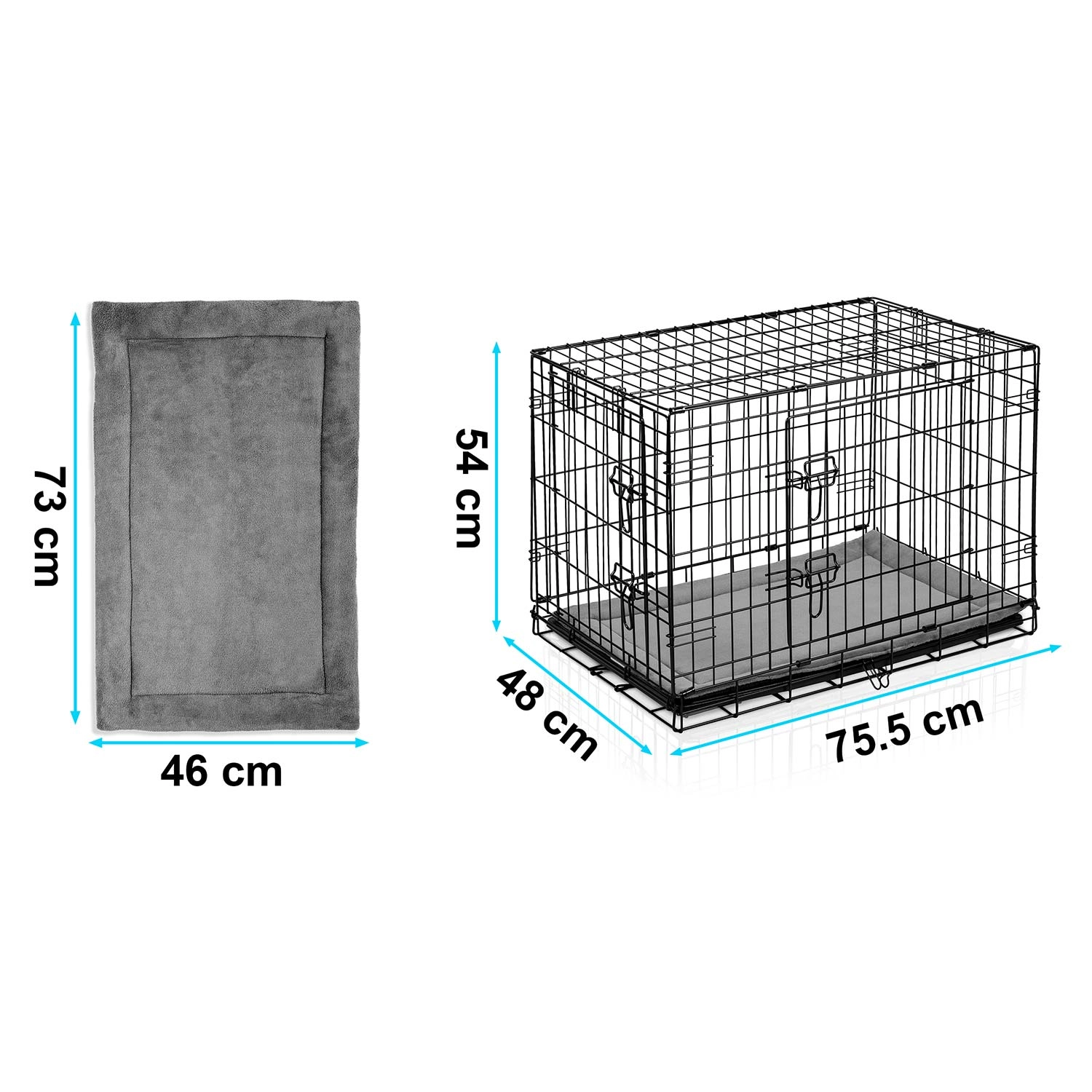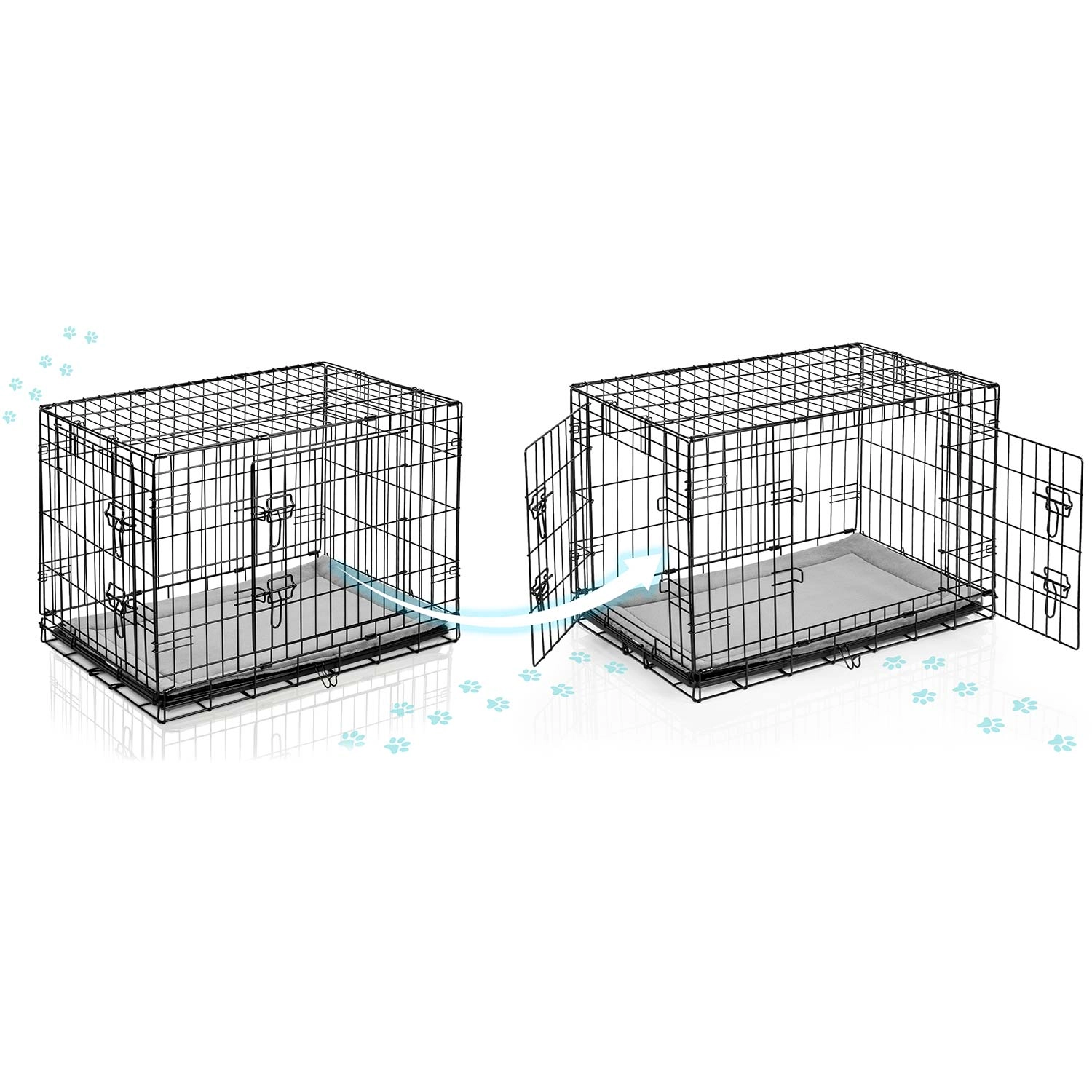 Praktisk og robust kennelbur med blød pude til små hunde, der giver sikkerhed, komfort og fremragende ventilation derhjemme og på farten. To døre for nem adgang, udtræksbakke for hurtig rengøring og sammenklappelig konstruktion til fladt format med bærehåndtag sikrer bekvem brug. Ideelt til træning, hvile og sikker transport i bil.
