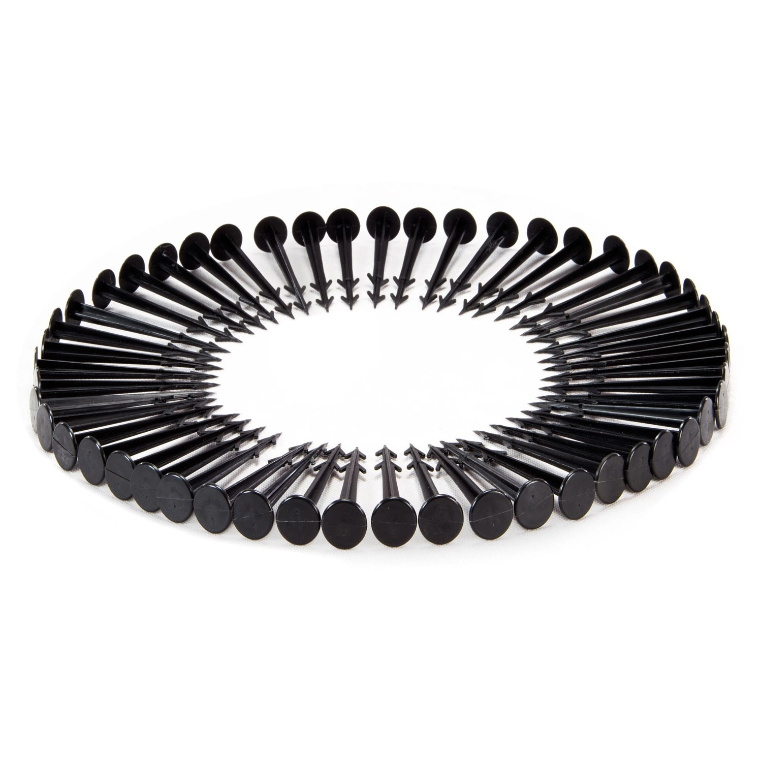Sættet indeholder 50 robuste plastpløkker med bredt hoved og spids til nem nedslagning. De sikrer tekstilet selv på blæsende steder og forhindrer, at det bliver løftet af vinden.