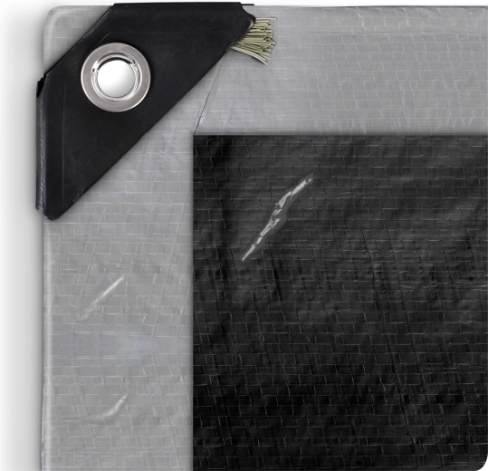 Ideel til afdækning af både, læs på trailer, byggematerialer eller brænde. Dobbelt­sided sølv–sort udførelse for praktisk brug.