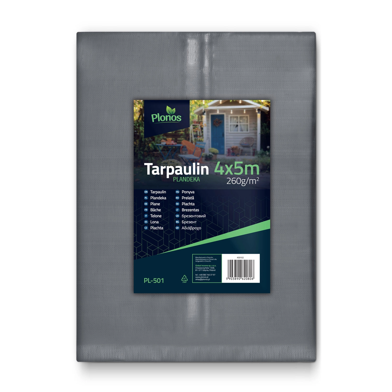 Presenning HDPE 400 × 500 cm, 260 g/m², sølv–sort