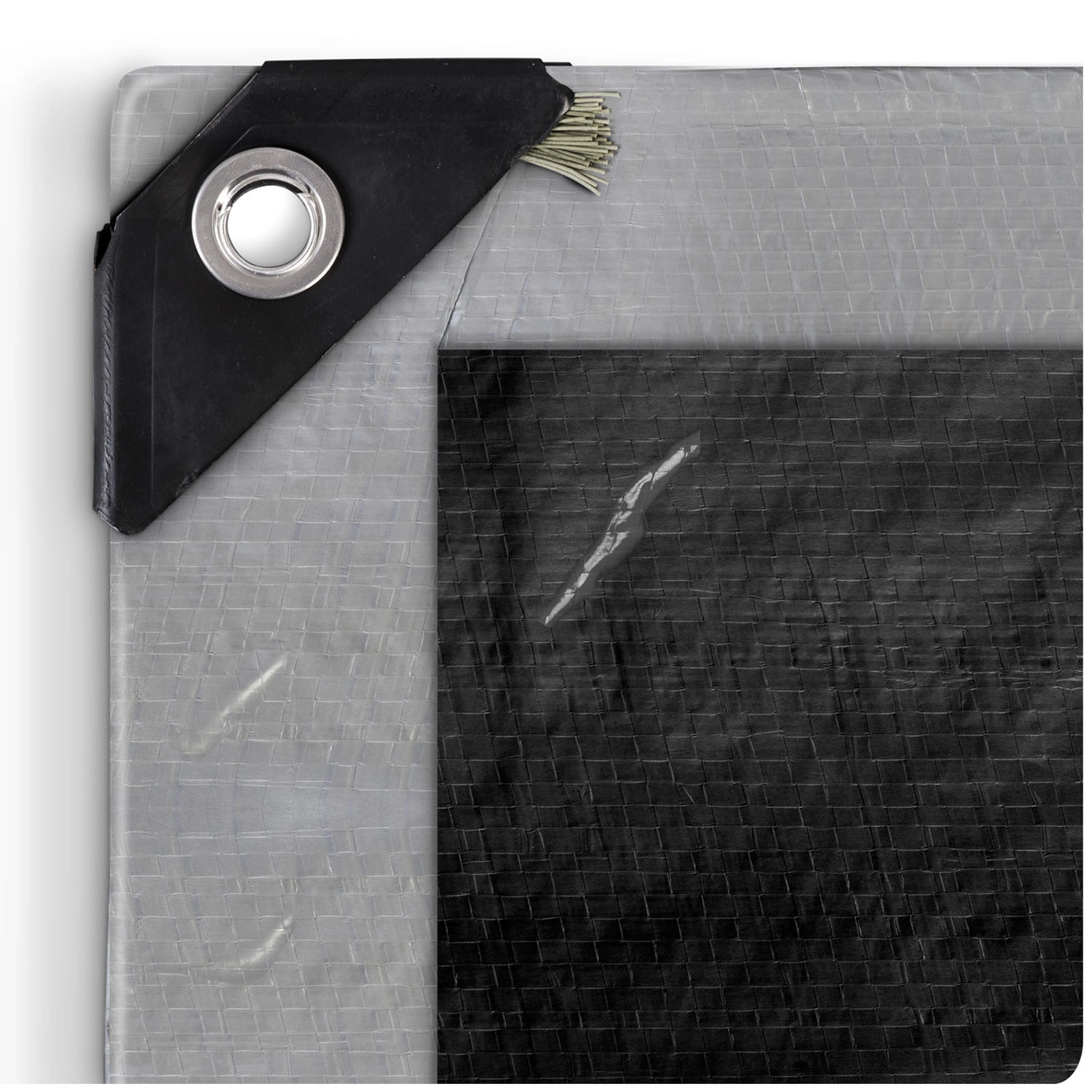 Korrosionsbestandige stålringe langs kanten og forstærkede hjørner muliggør hurtig og sikker opspænding på båd, køretøj eller brændeskur.