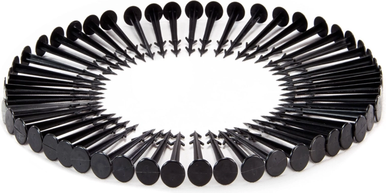 Inkluderer 100 plastspyd med krogformede spidser og bredt hoved for hurtig og stabil fastgørelse af dugen – også på ujævne overflader.