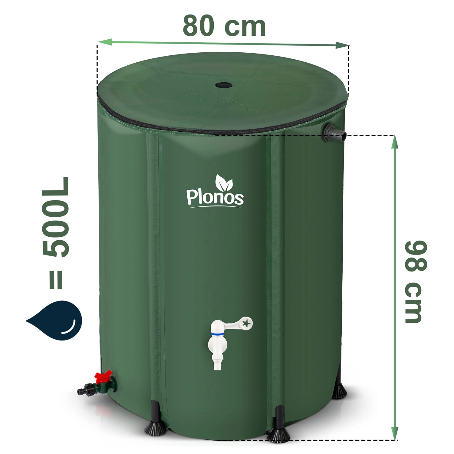 Plonos regnvandstønde på 500 l er en pålidelig hjælper til daglig vanding. Den robuste konstruktion med stabil, korrosionsbestandig ramme og kraftig PVC-kappe tåler både vejr og UV-stråling. Med det øverste låg med åbninger og integreret sigte opsamler du nemt regnvand fra tagrenden og tilbageholder samtidig blade og snavs.
