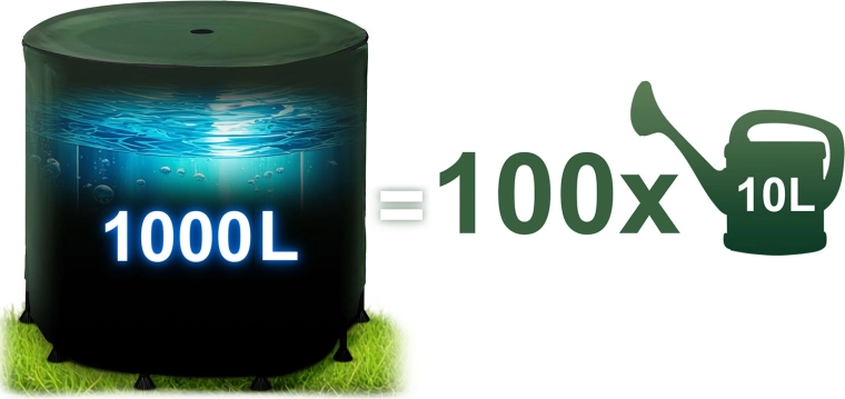 • Stor kapacitet 1000 l – ideel til haver, drivhuse og bede.