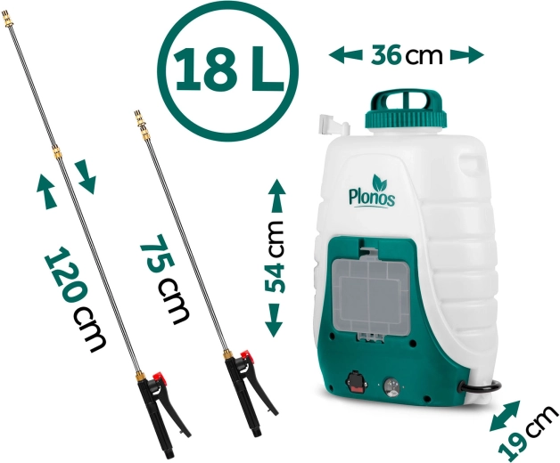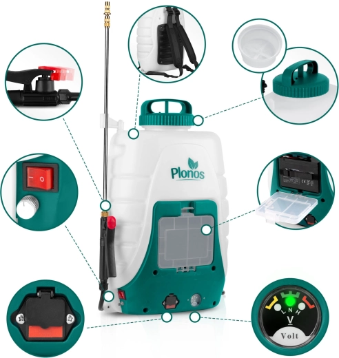 Den kraftige batteridrevne rygsprøjte Plonos med en kapacitet på 18 l og lang driftstid på 3–4 t gør havepleje og større arealer lettere. Takket være regulering af motorydelse, udskiftelige dyser og justerbar lanse opnår du præcis, økonomisk og ensartet forstøvning. Komfortable polstrede seler, CE-certificering og en robust tank af PE gør denne sprøjte til et pålideligt valg til gødskning, skadedyrsbekæmpelse og vanding.