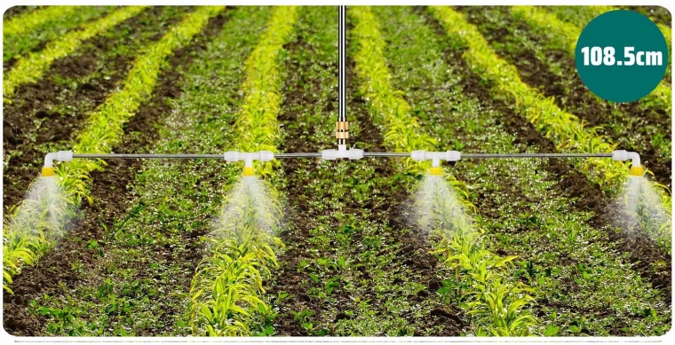 Den firedyssede lanse giver en ensartet forstøvning med en bredde på op til ca. 108,5 cm – ideel til store bede og græsplæner, hvor du har brug for hastighed og konsistens.