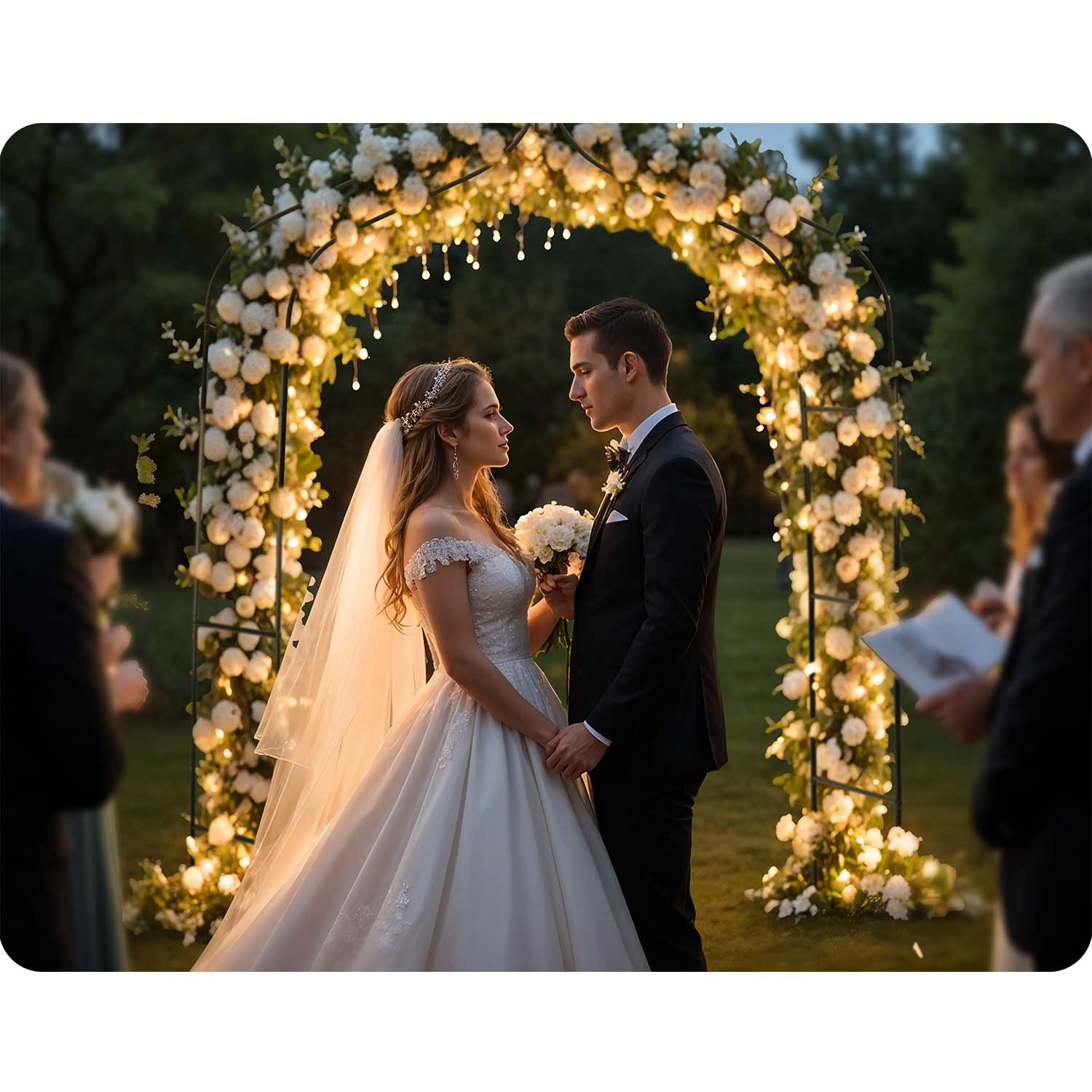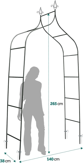 Monteringen er hurtig og intuitiv – alle monteringsskruer og 4 ankre følger med i pakken. Når den er forankret i jorden, får du en solid støtte til klatreplanter, som i sæsonen danner en romantisk grøn tunnel. Pergolaen kan nemt pyntes med lyskæder, bånd eller guirlander til bryllupper, fester og havearrangementer.