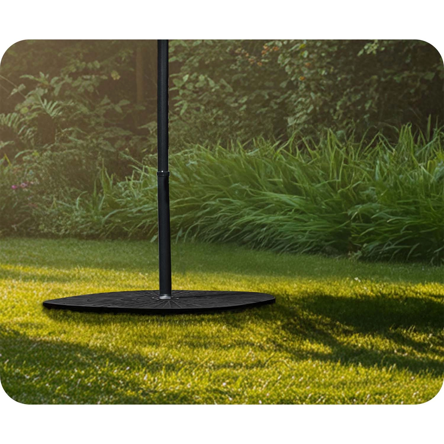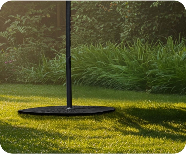 Fire indbyrdes forbundne segmenter omslutter masten tæt og danner en kompakt, cirkulær base, som øger parasollens stabilitet selv i blæsende vejr.