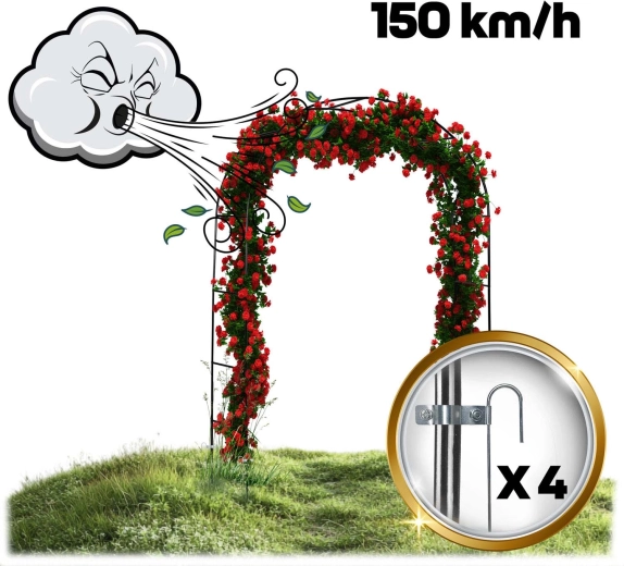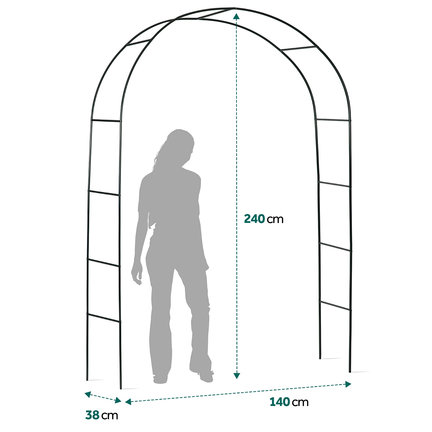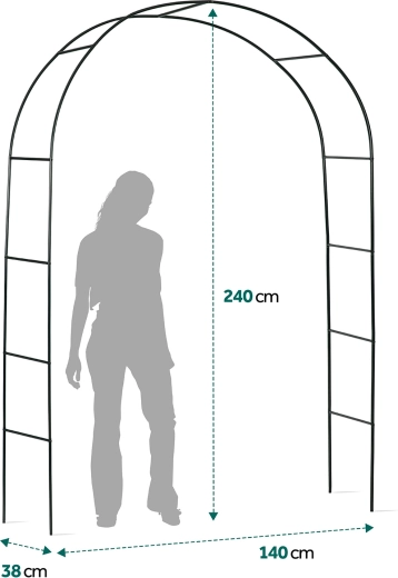 Elegant havelystbue med en højde på 240 cm, der giver din have en romantisk indgang og støtte til klatreplanter. Har en robust stålkonstruktion med pulverlakering, nem montering uden specialværktøj og jordankre for stabil fastgørelse. Ideel til roser, vedbend, vin samt dekorationer med lyskæder.