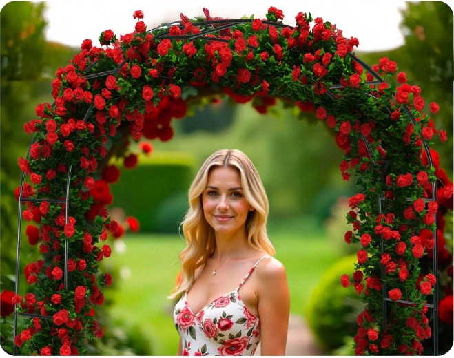 Den buede form giver naturlig støtte til roser, vedbend eller vin og kan nemt suppleres med lyskæder for en festlig stemning.