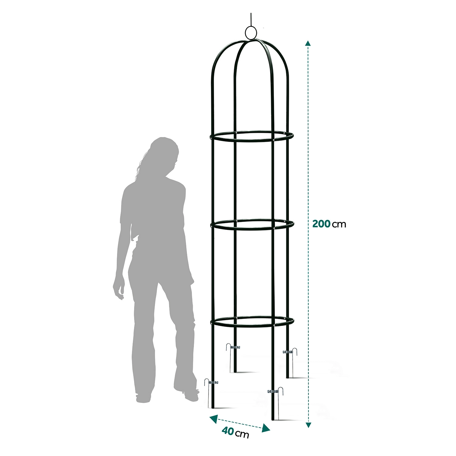 Obelisk-pergolaen PLONOS forvandler hvert bed, plantekrukke og terrasse til et iøjnefaldende fokuspunkt. Metalkonstruktionen med sort overfladebehandling er robust, korrosionsbestandig og klar til at modstå både regn og sol. Med en slank grundflade på 40 × 40 cm passer den i mindre rum, men giver alligevel pålidelig støtte til frodigt blomstrende klatreplanter.
