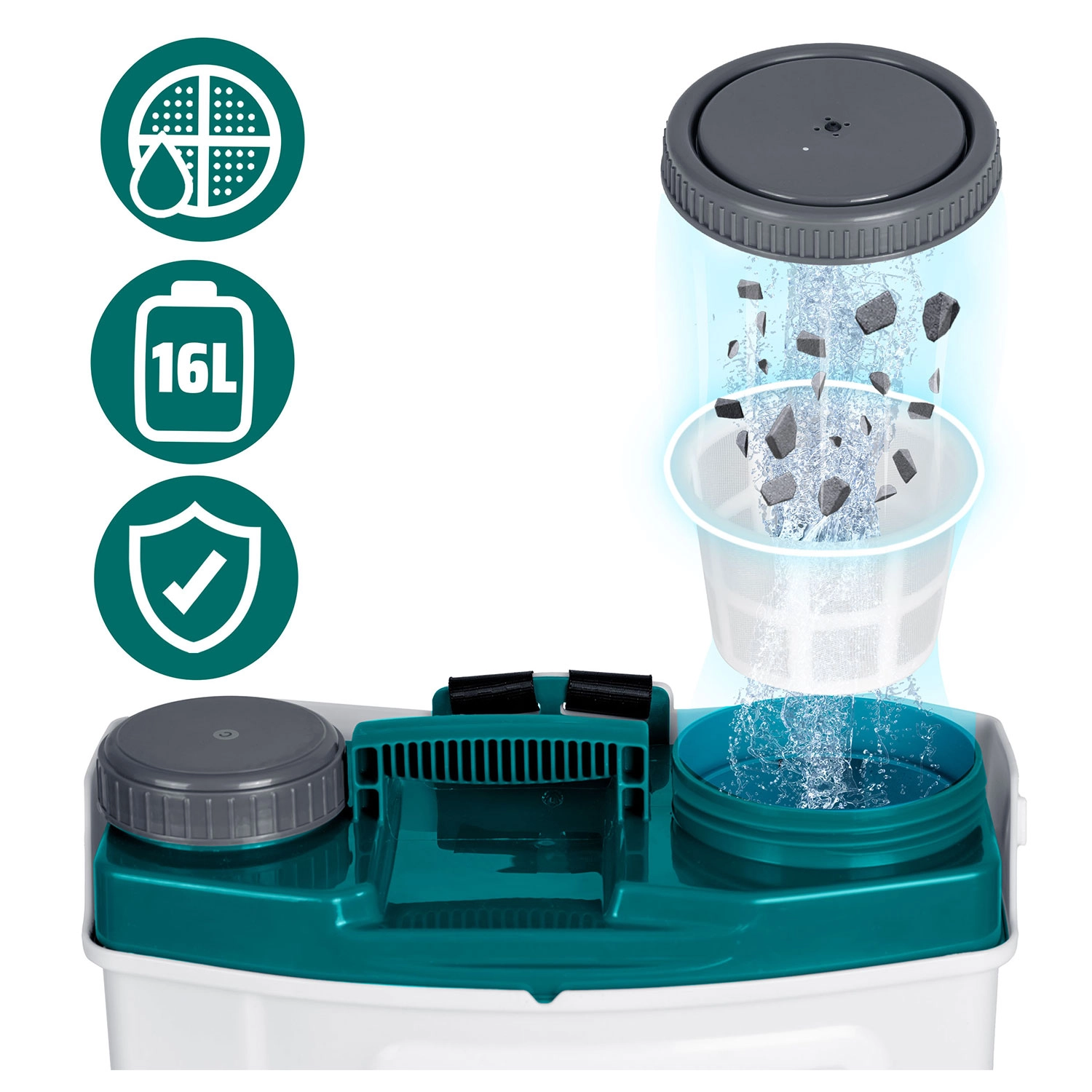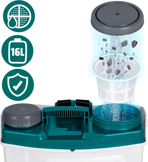 Takket være 4 udskiftelige dyser vælger du nemt den ideelle stråle – fin tåge til sarte planter, flad stråle til præcisionsarbejde, en justerbar firehulsdyse til alsidig brug eller et dobbelt hoved til hurtig dækning af bredere bede. Polstrede, forstærkede stropper med justering, filtersi mod urenheder og en robust PE-beholder sikrer lang levetid og komfort under arbejdet.