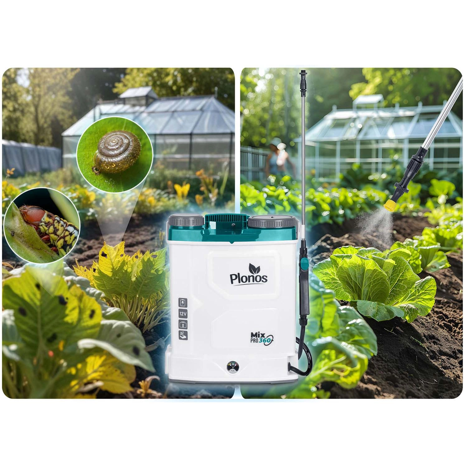 Sprøjten PLONOS Mix Pro 360 er en pålidelig hjælper til plantebeskyttelse og -næring i bede, på græsarealer og i frugtplantager. Det indbyggede omrøringssystem holder arbejdsvæsken homogen, hvilket øger sprøjteffektiviteten og eliminerer tilstopning af dyser. 12V/8Ah-batteriet giver lydsvag drift og op til 9 timers driftstid pr. opladning, så selv større arealer klares komfortabelt.