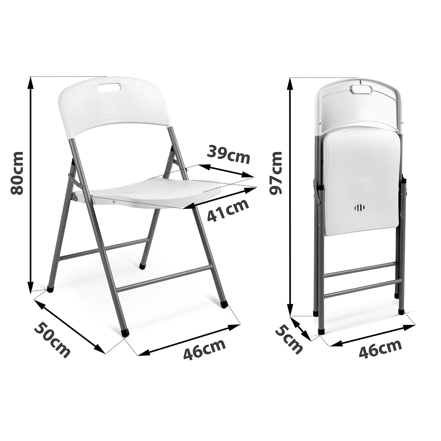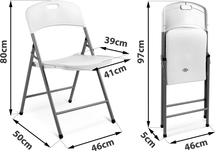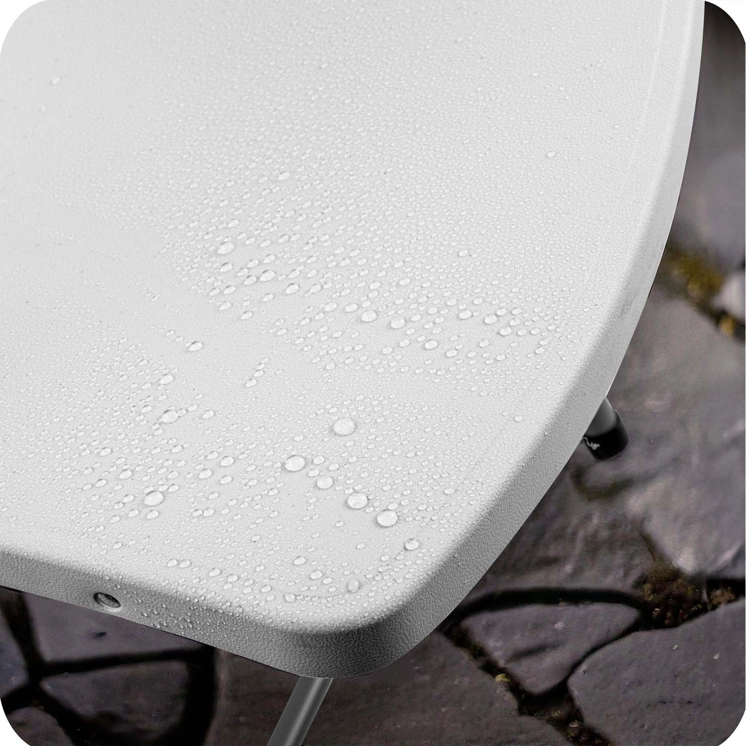 Stolene foldes fladt, så de fylder minimalt under opbevaring. Den vandafvisende og UV-bestandige overflade er nem at rengøre og tørrer hurtigt, hvilket er ideelt til udendørs brug, catering og hjemmefester. Skridsikre fødder på benene beskytter gulvet og øger stabiliteten.