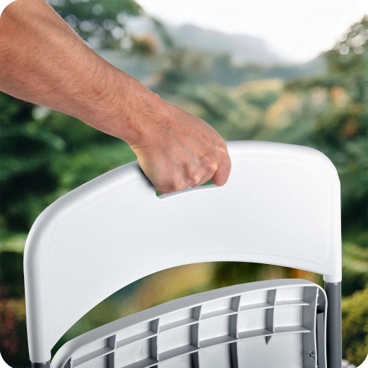 Den praktiske åbning i ryglænet gør det let at gribe om stolen og transportere den hurtigt. Ideel til hyppige flyt mellem have, terrasse eller event.