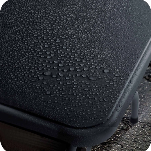 Den let rengørlige PE-overflade modstår vand, UV-stråling og almindeligt slid, så bordet ser flot ud selv ved hyppig brug.