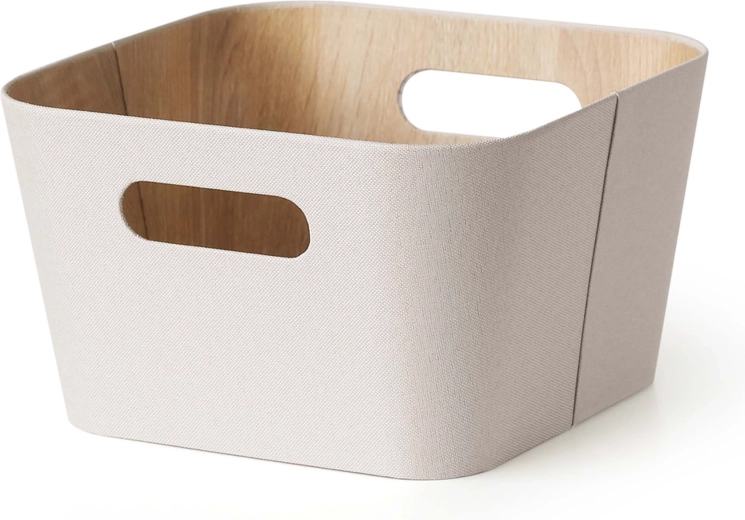 Takket være det kvadratiske format 27 × 27 cm passer kurven perfekt i de fleste reolsystemer og hylder. Materialesammensætningen af papir og pap sikrer lav vægt og samtidig tilstrækkelig styrke til opbevaring af tekstiler, kosmetik eller kontorartikler.