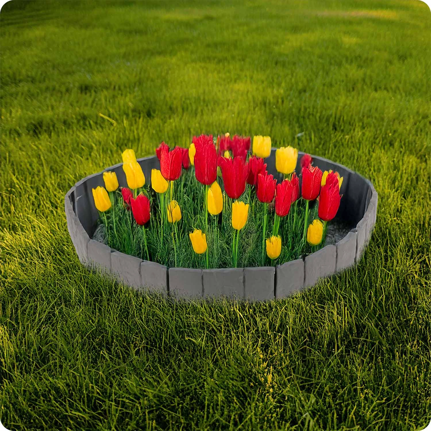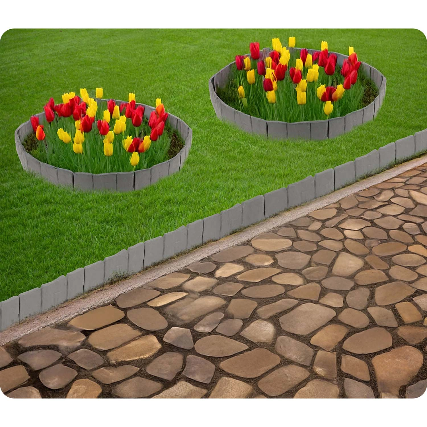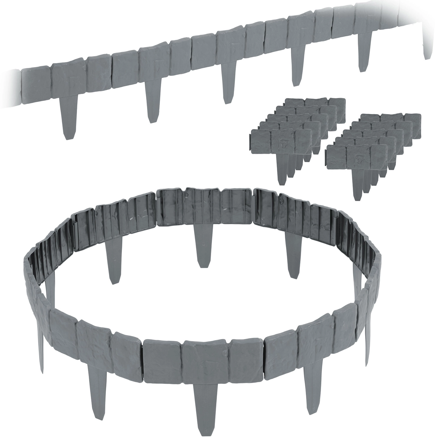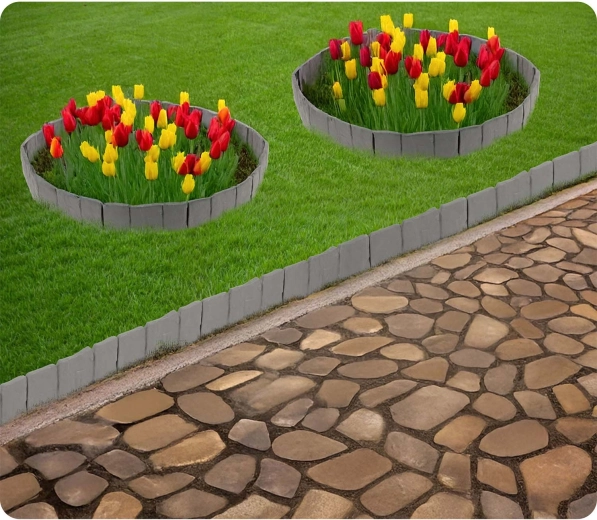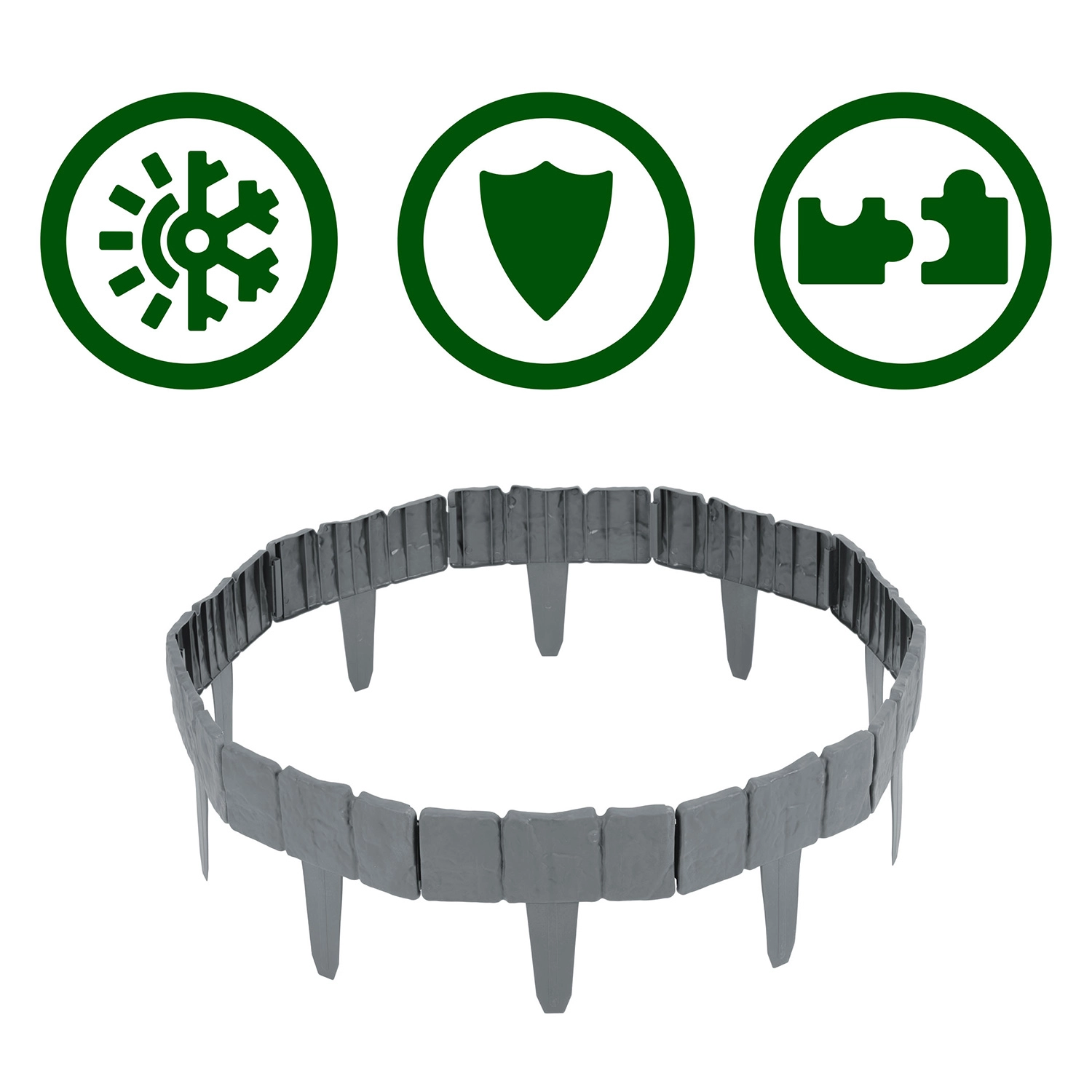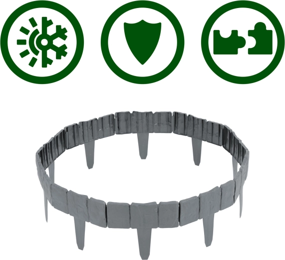 Den sammenkoblingsbare konstruktion tilpasser sig både lige linjer og buer. Ideel til kanter omkring træer, blomsterbede eller stier.