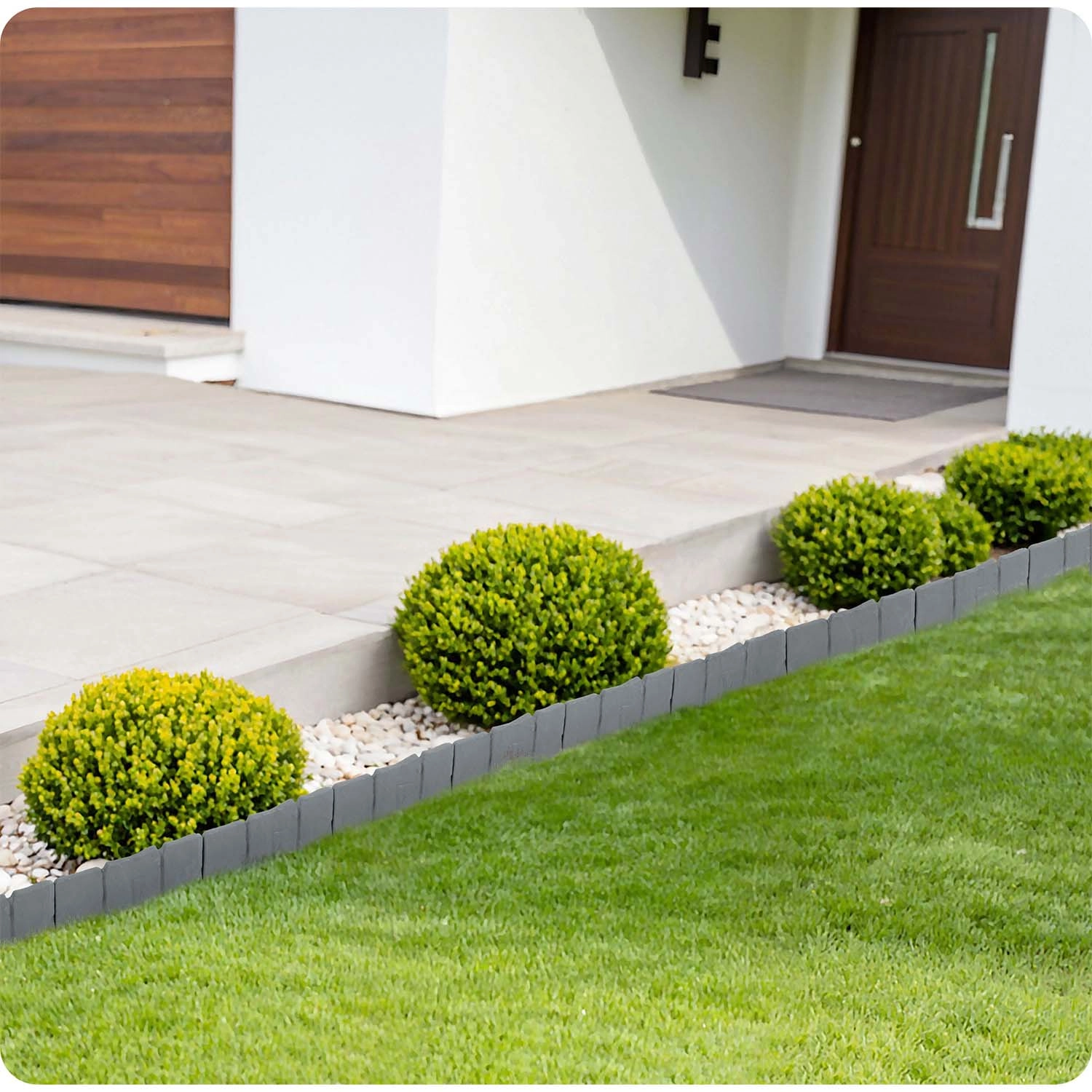 PP-materialet er designet til udendørs brug: tåler UV-stråling, frost og regn, nedbrydes ikke og holder formen. Desuden forhindrer det blanding af jord, småsten og bark med græsset og hjælper med at holde bedkanter rene og præsentable.