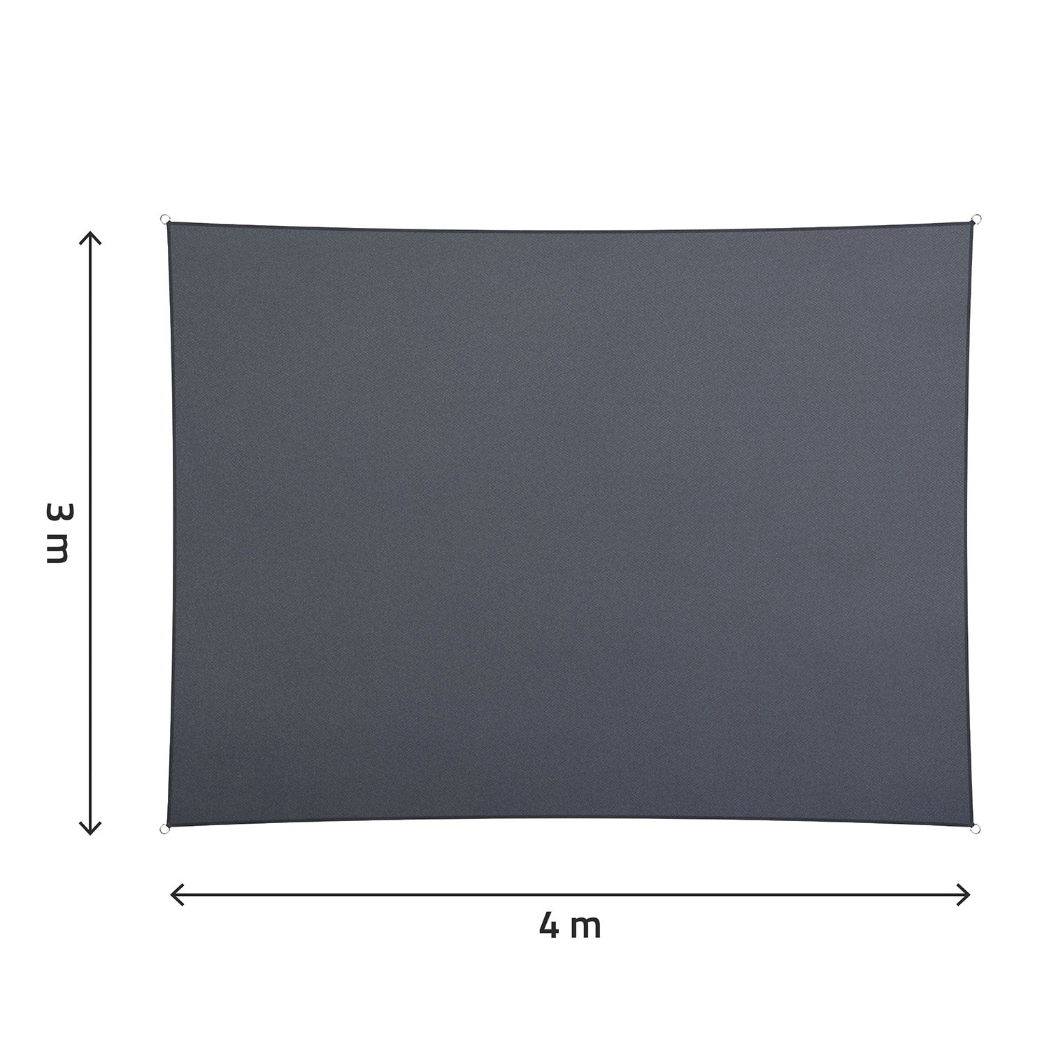 Den rektangulære skyggepresenning 3 × 4 m i elegant grå giver stabil og komfortabel skygge på enhver udendørs overflade. Det tæt vævede PE-materiale 180 g/m² er vandafvisende og hjælper med at beskytte mod UV-stråling og lette byger – dråberne løber nemt af overfladen.