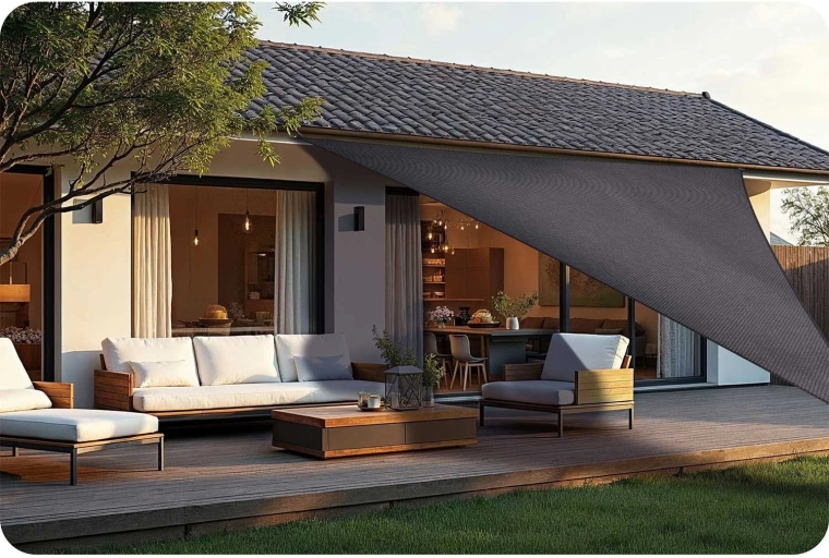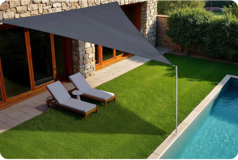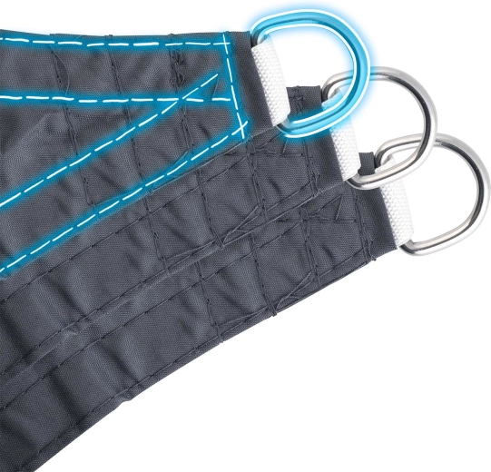 Hjørner med forstærkede sømme og solide øjer gør det muligt at spænde sejlet sikkert mellem vægge, stolper eller træer uden risiko for at det river sig løs.