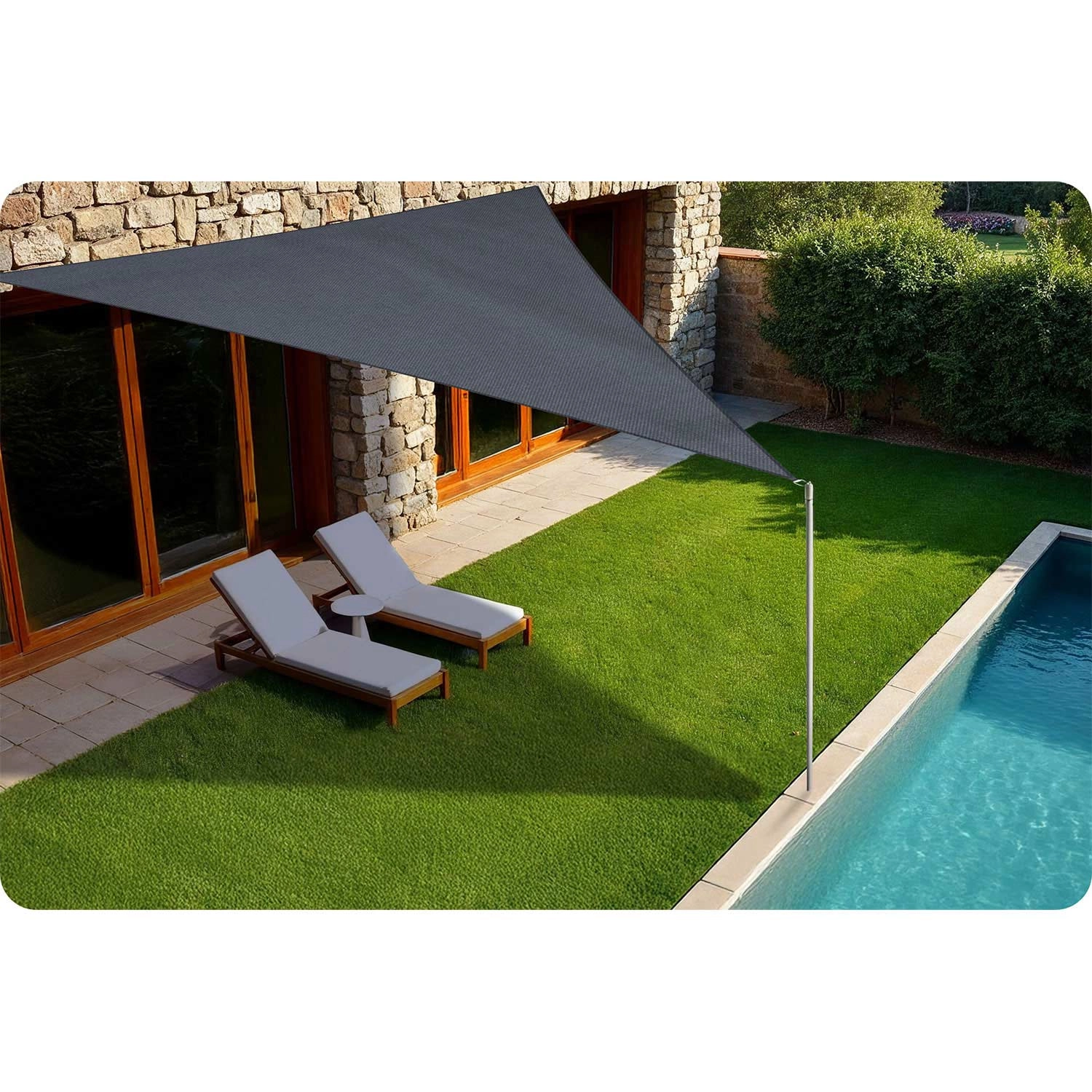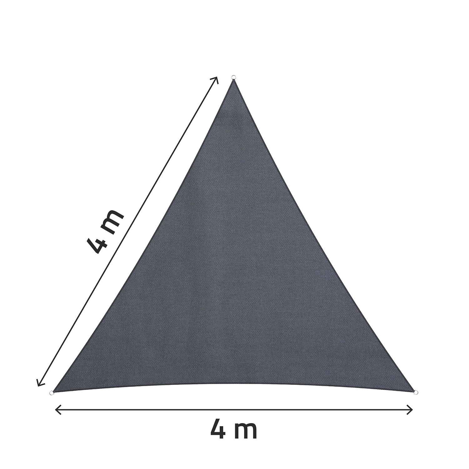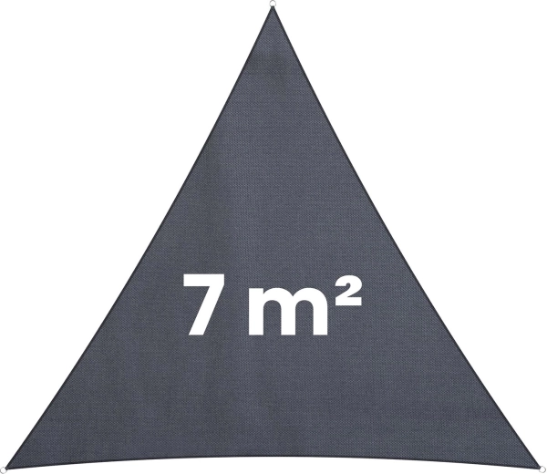 Den trekantede form 400 × 400 × 400 cm skaber op til 7 m² skygge og giver udendørsområdet et moderne udtryk og ekstra komfort.