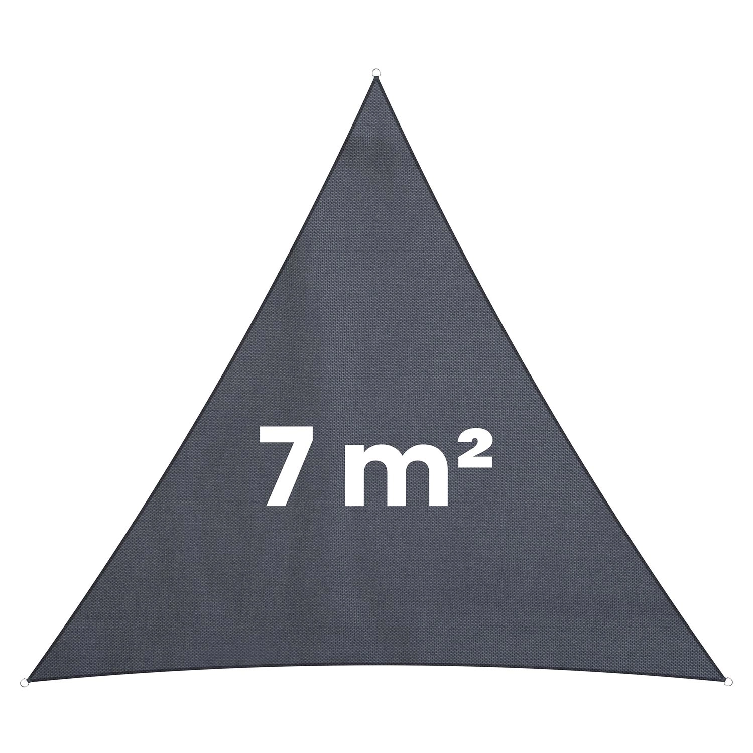 Skab behagelig skygge på terrasse, altan og i haven med et trekantet solsejl på ca. 7 m². Det slidstærke PE-stof 180 g/m² giver effektiv UV-beskyttelse og tåler let regn. Takket være forstærkede kanter og metaløjer er monteringen sikker og hurtig, og de medfølgende fastgørelsessnore gør installationen nem på få øjeblikke.