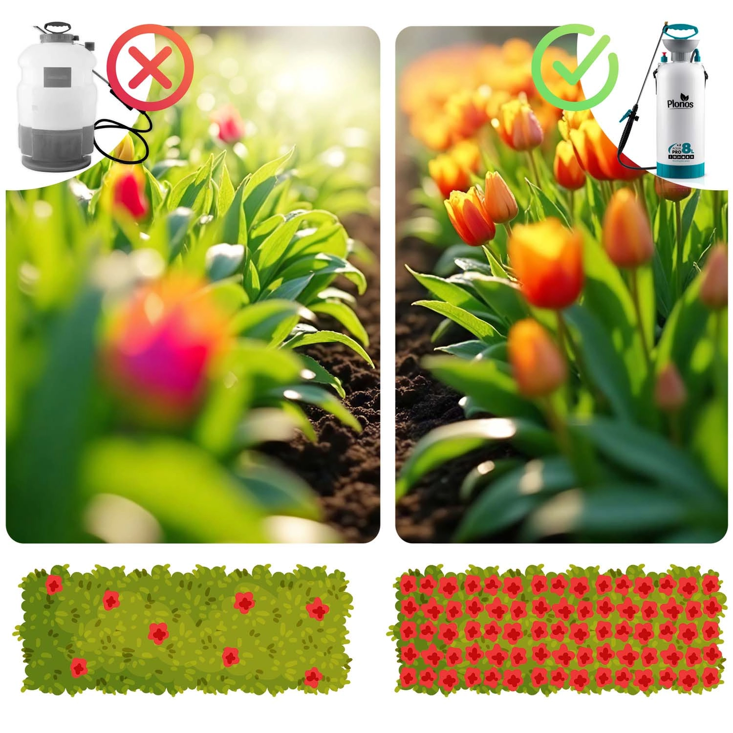Plonos-serien tilbyder sprøjter med tydelig skala, robust pumpe og metal-lanse. Vælg kapacitet efter omfanget af havearbejdet.