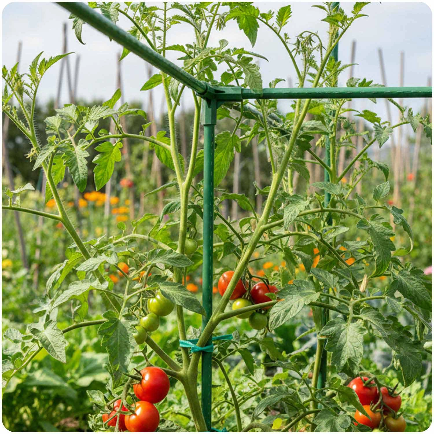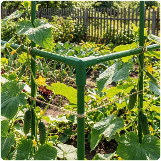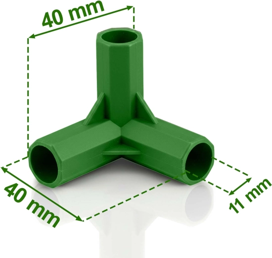 Byg robuste rammer til tomater, agurker eller bønner. De grønne koblinger med 11 mm stænger holder planterne oprette, forbedrer luftcirkulationen og giver lettere adgang til høsten.