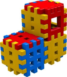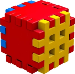Takkede kanter og gitterflader muliggør en solid sammenkobling af delene og bygning af simple 3D-former, klodser og tårne.