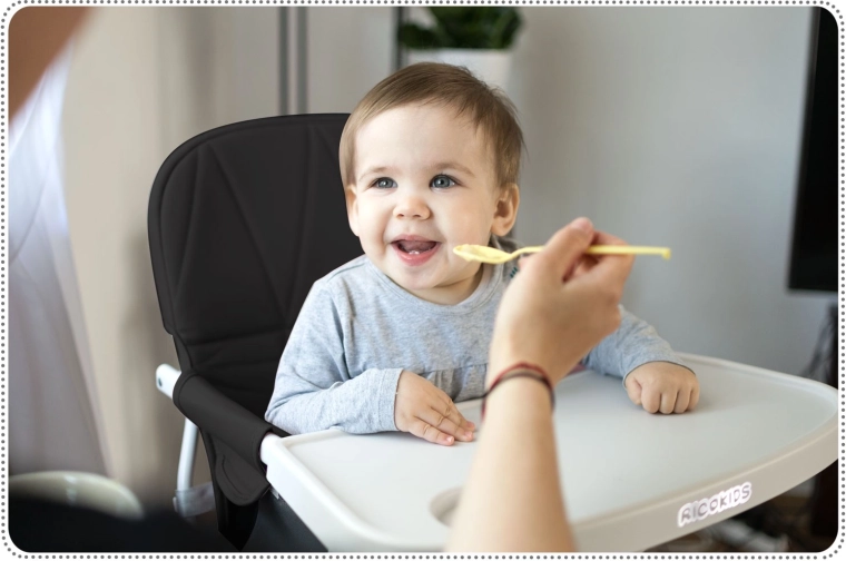 Blød polstring, ergonomisk fodstøtte og en 3-punkts sikkerhedssele holder dit barn komfortabelt og sikkert ved hvert måltid.