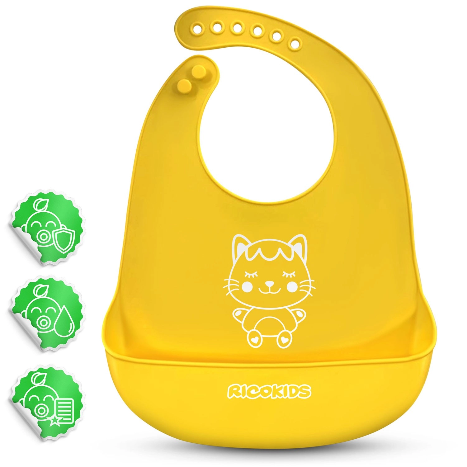 Den praktiske silikonehagesmæk Ricokids i gul er den ideelle hjælper ved måltider. Den er let, vandafvisende og holdbar, lavet af et behageligt materiale med en dyb lomme til at opfange krummer. Takket være 7-trins justering vokser den med barnet, og den BPA-fri sammensætning sikrer sikker brug.