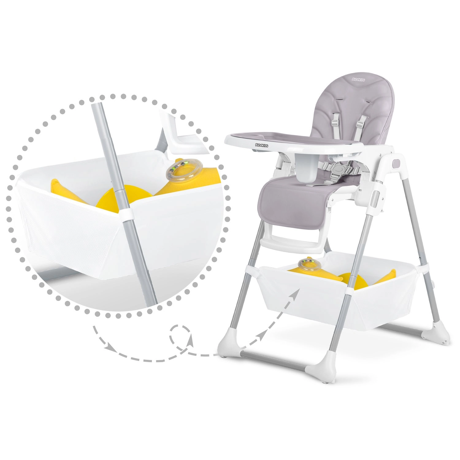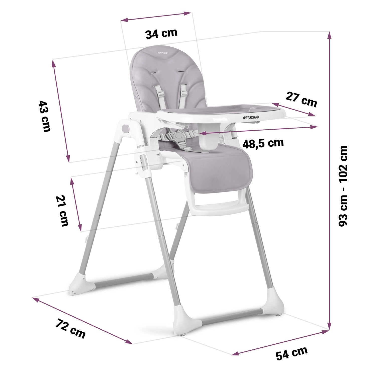 Ricokids Tulo er en moderne højstol, der kombinerer komfort, sikkerhed og praktisk anvendelighed til daglig fodring og leg. Takket være den lette sammenklapning kan den opbevares på få øjeblikke, mens den aftagelige bakke med indsats gør oprydningen efter måltidet hurtig. Det holdbare, smudsafvisende betræk tørres nemt af.
