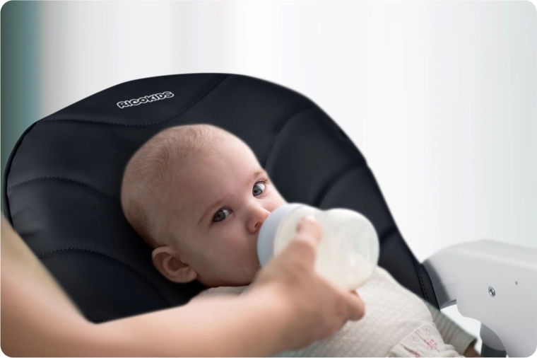 - Justerbart sæde og fodstøtte – komfort for babyer fra 6 måneder og op til 15 kg.