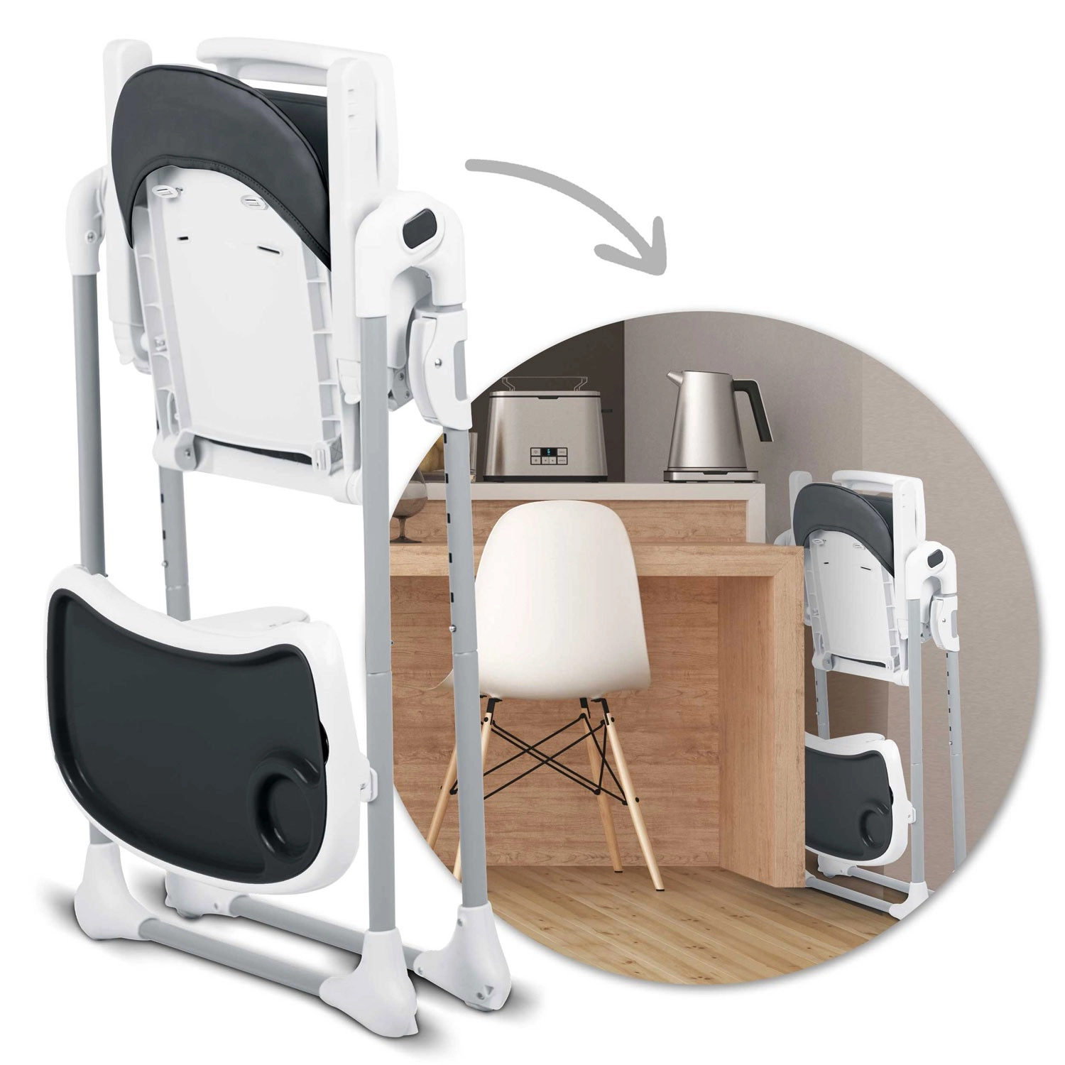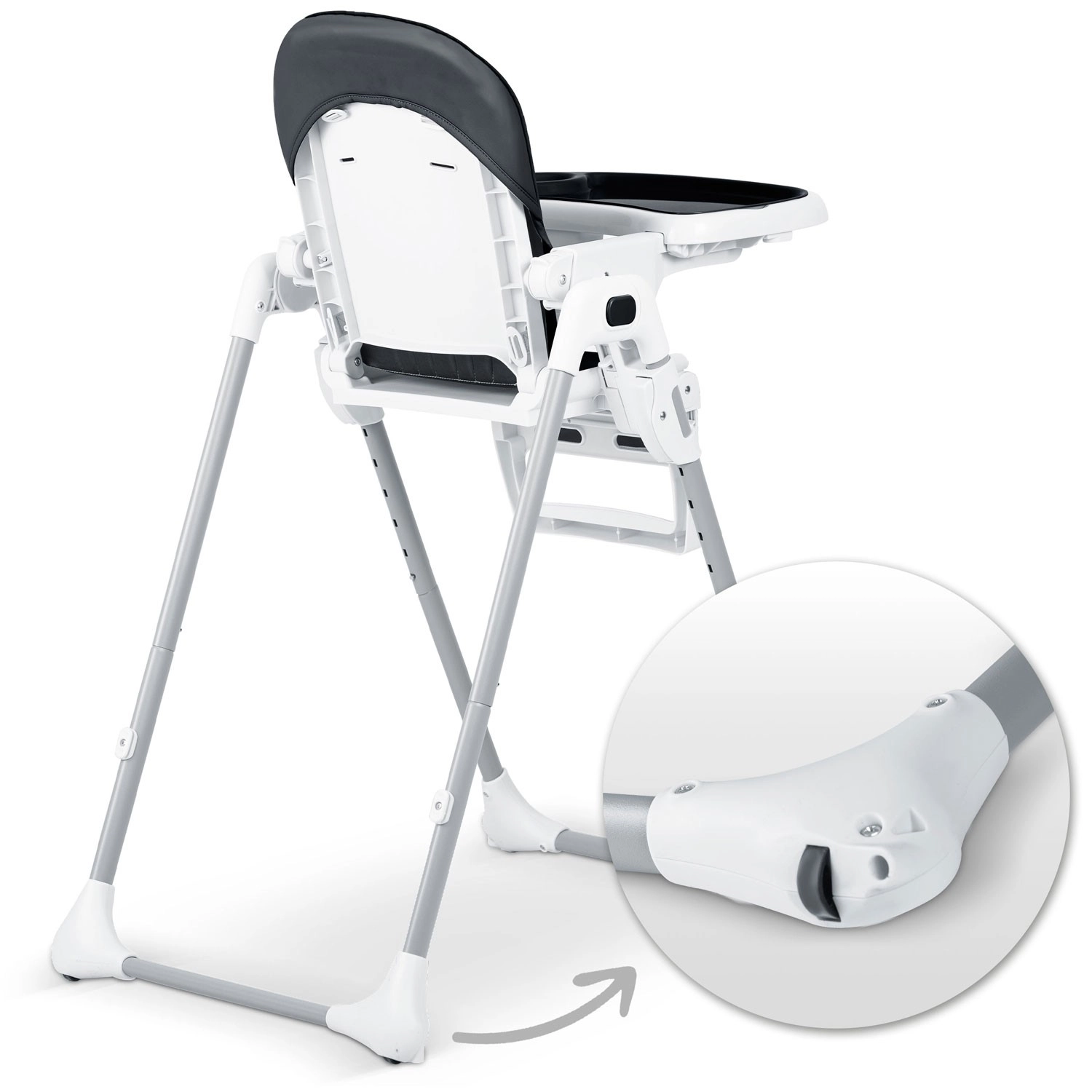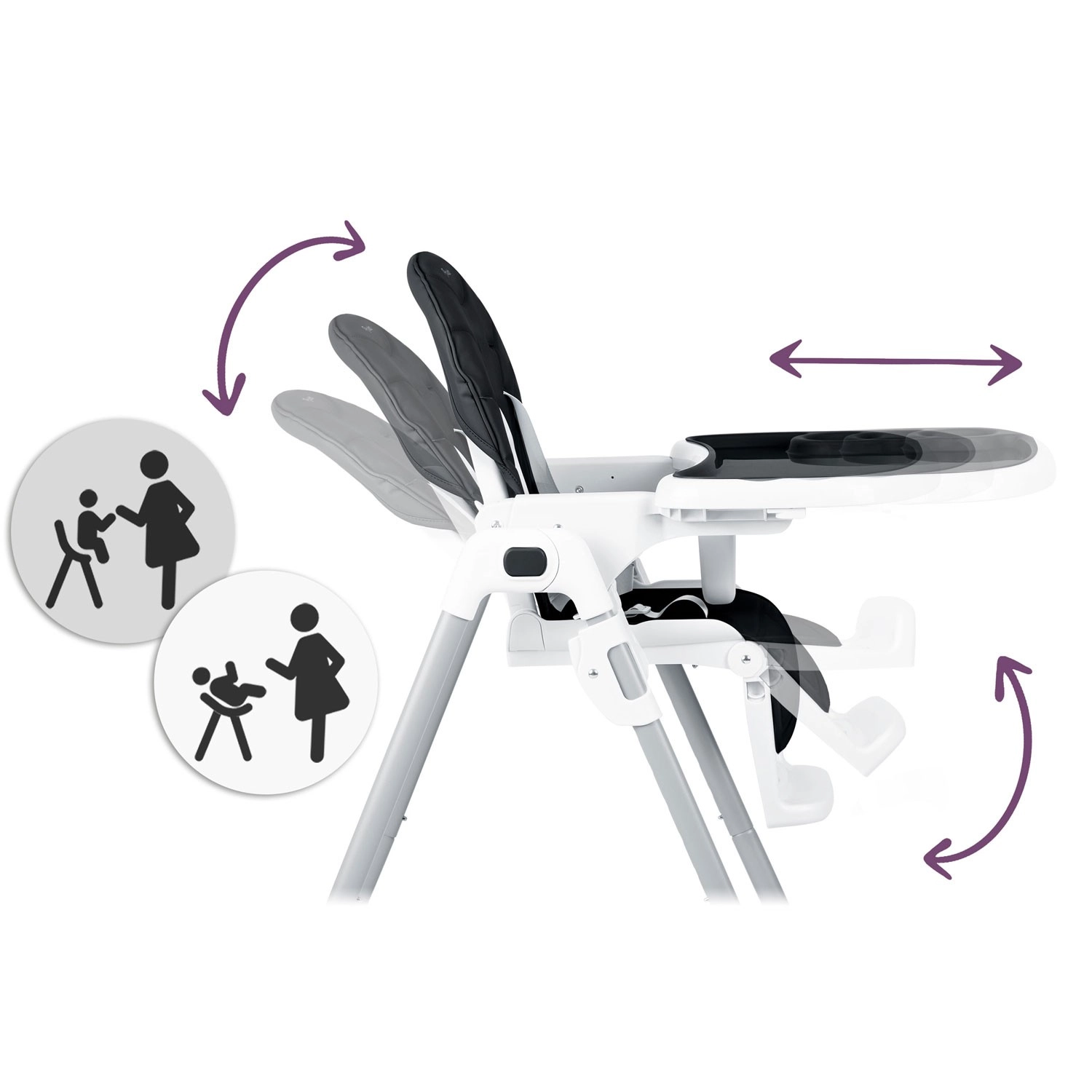 Den moderne højstol RICOKIDS Tulo i elegant sort giver dit barn komfort og sikkerhed ved hvert måltid. Den tilbyder justerbar højde, positionerbar og aftagelig bakke med forhøjet kant, justerbar fodstøtte og 5-punkts sikkerhedsseler. Den foldes nemt til et kompakt format, har ikke-absorberende betræk for hurtig rengøring, og takket være hjul kan du let flytte den derhen, hvor du har brug for den.