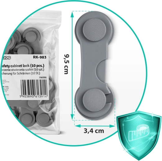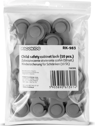 Gør hjemmet sikkert for de mindste. Selvklæbende sikkerhedslåse fra RICOKIDS forhindrer effektivt åbning af skabe, skuffer, køleskabe, mikrobølgeovne og toiletsæder. Den enkle to-flade-konstruktion med kvalitetsklæb fra 3M holder sikkert, men kan ved behov nemt fjernes uden at beskadige møbler.