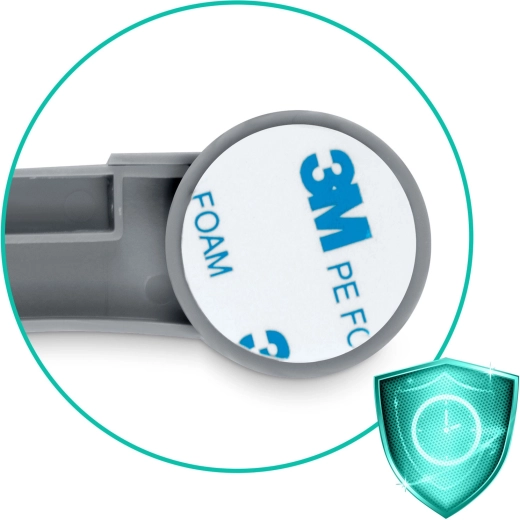 Affedt overfladen, fjern beskyttelsesfilmen, tryk fast – færdig på ét minut. Ingen boring eller skruer, ingen spor efter afmontering.