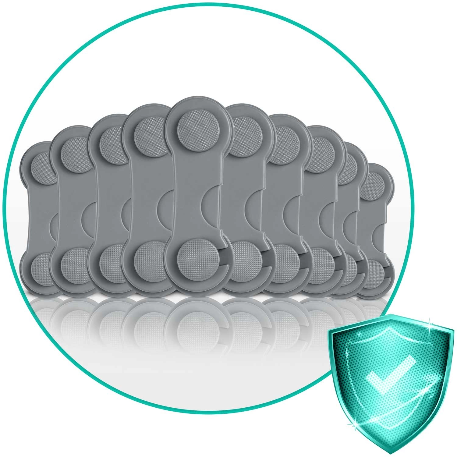 Én sikring til flere steder: skabe, skuffer, køleskabe, mikrobølgeovne eller toiletsæder – overalt hvor du vil forhindre, at børn åbner.